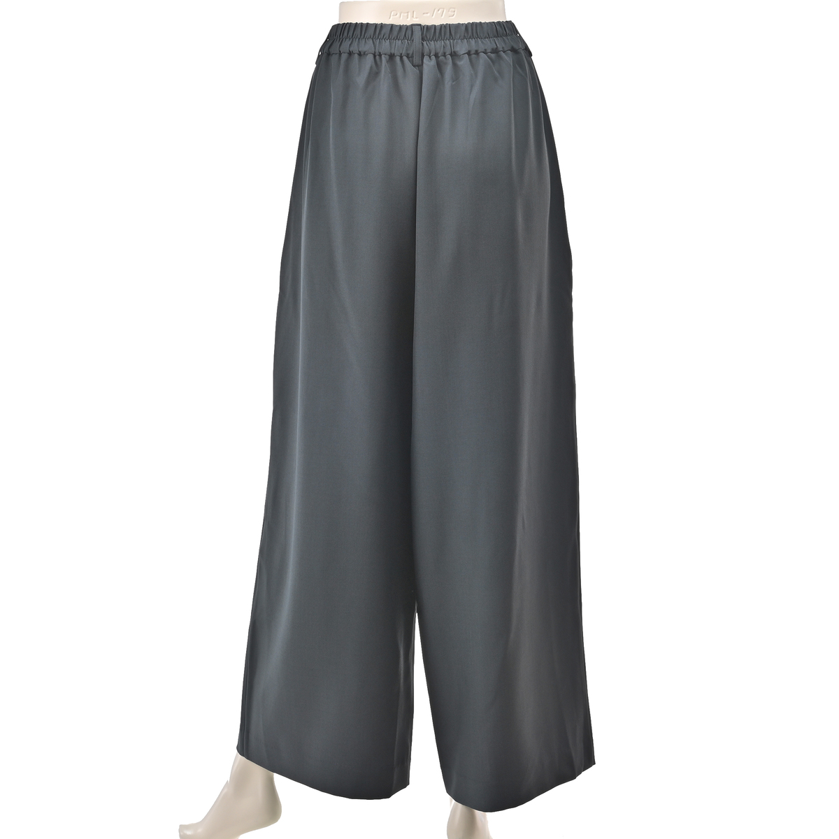 ウエストは総ゴムのプルオンタイプでラクな穿き心地。後ろはギャザー入り、フロントはすっきりフラットに仕上げました。両脇には便利なポケット付きです