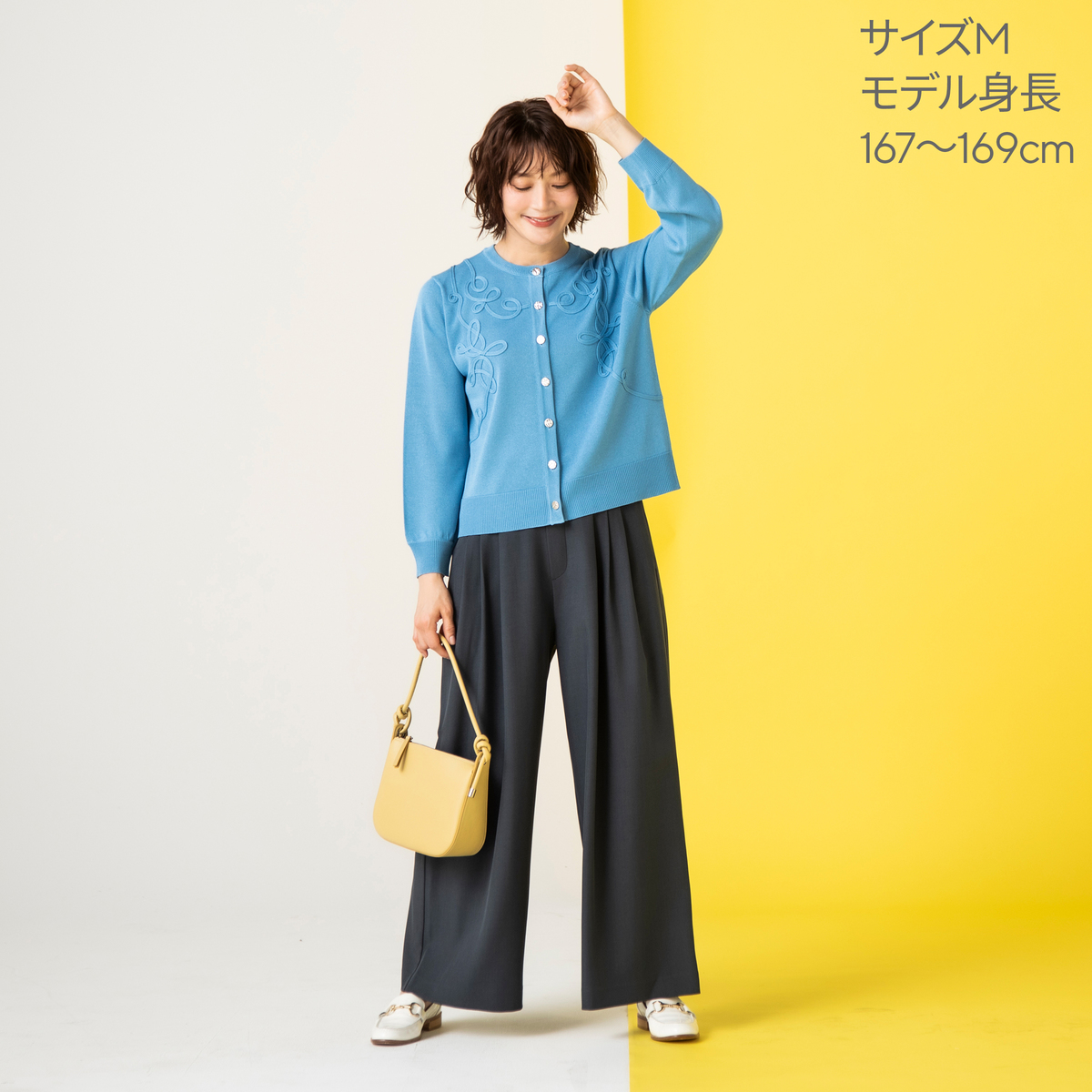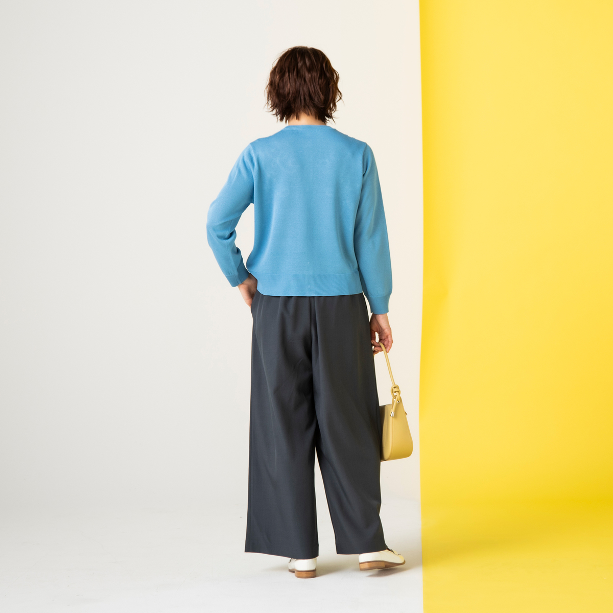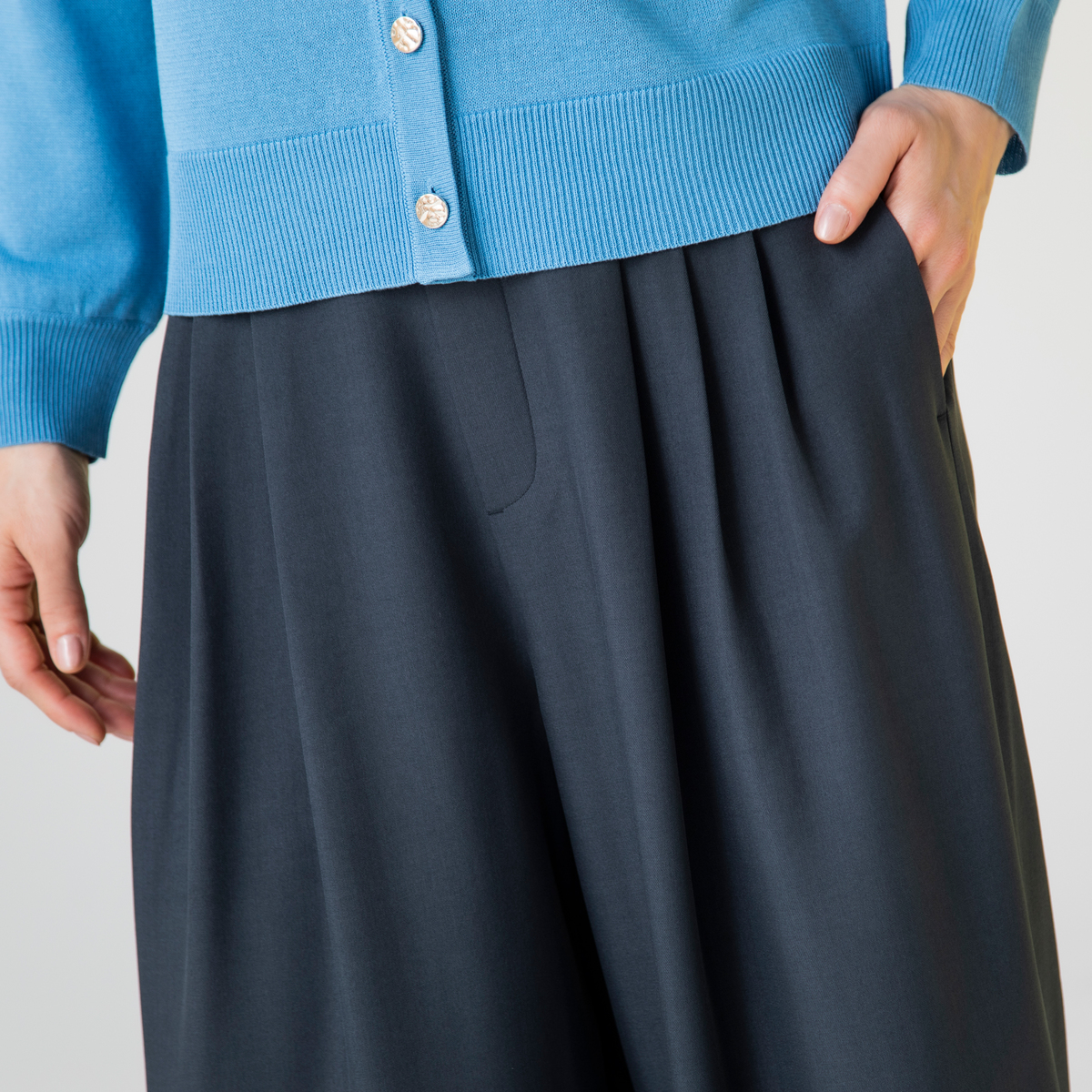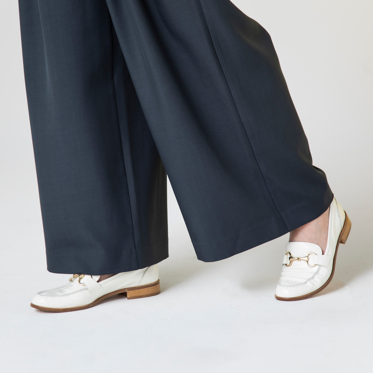 フロントにタックを3本入れたワイドパンツ。たっぷりと生地を使い、ゆとりのある大人なシルエットに仕上げました