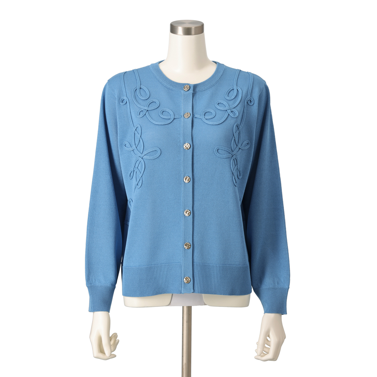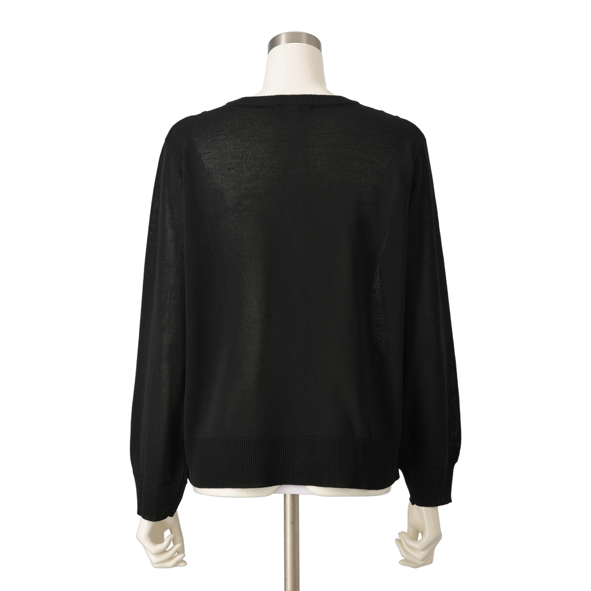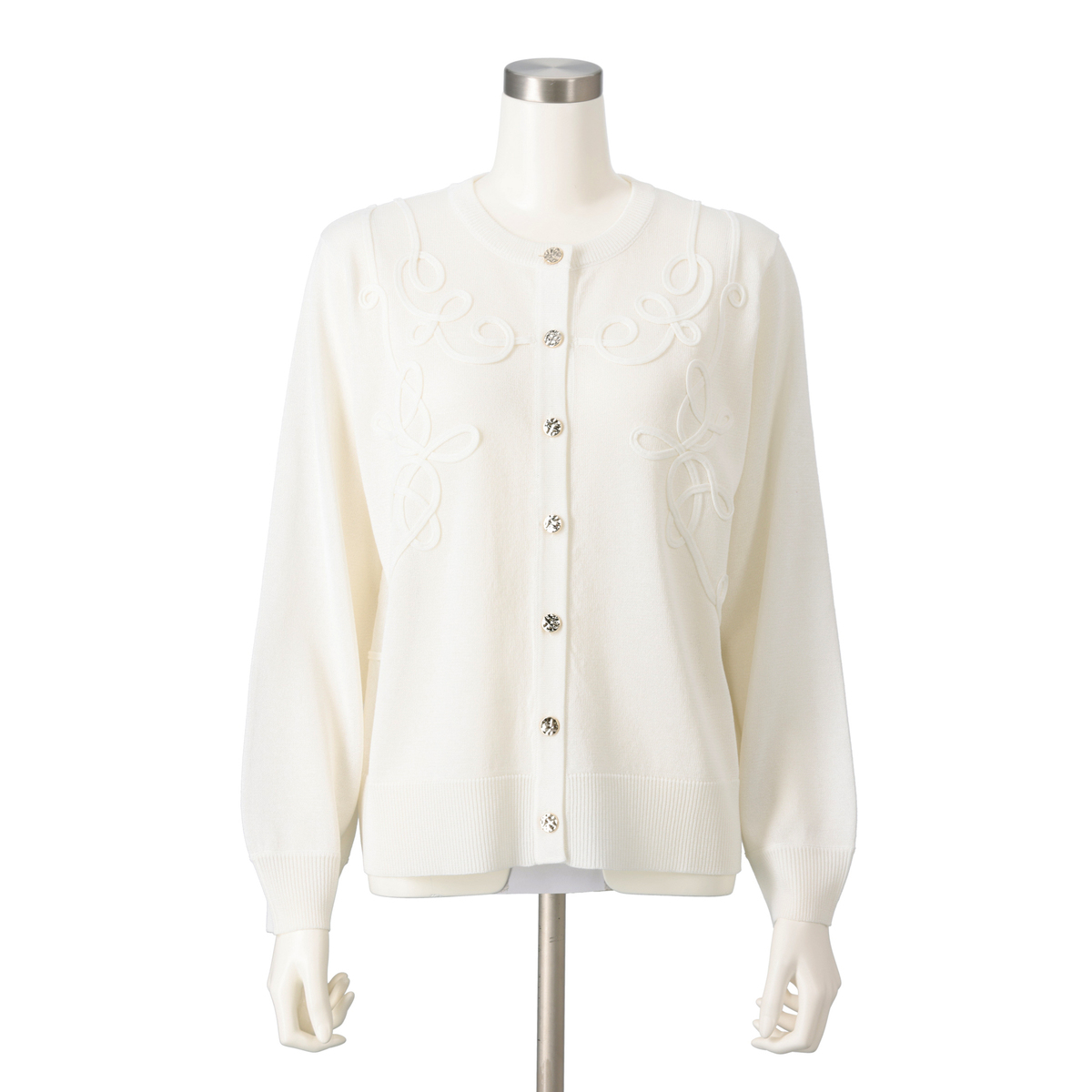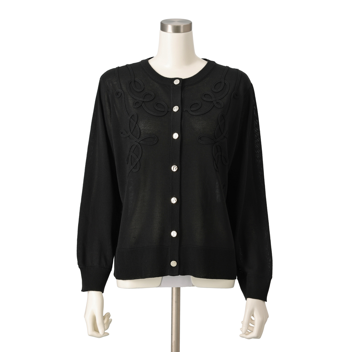 立体的なアート調のラインが華やかなカーディガン。ゆるすぎず程よくシンプルなベーシックシルエットで、インナーを合わせてもスタイルが決まります。涼しげなシアー感のある素材を使用しているので、暑い季節でも羽織として重宝します