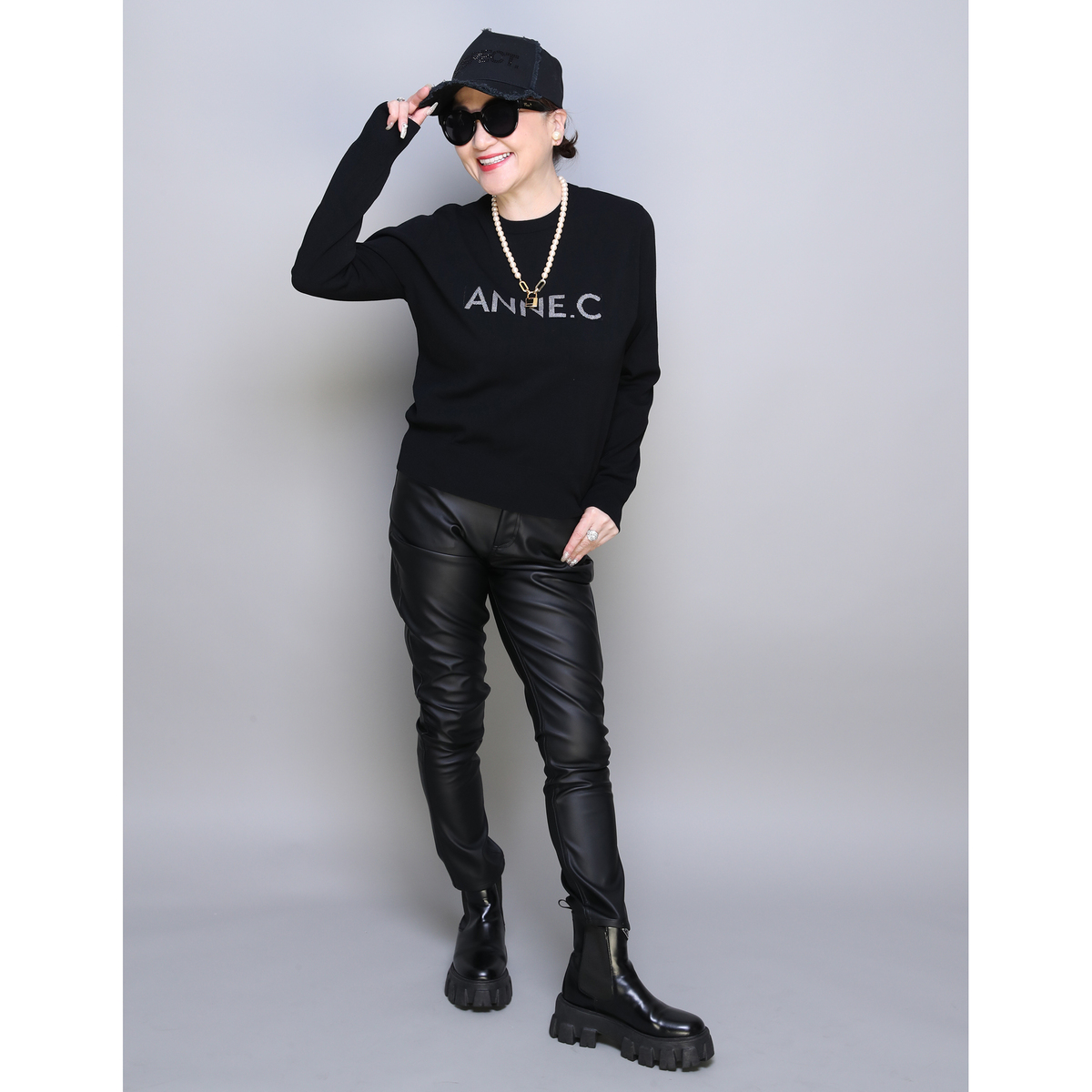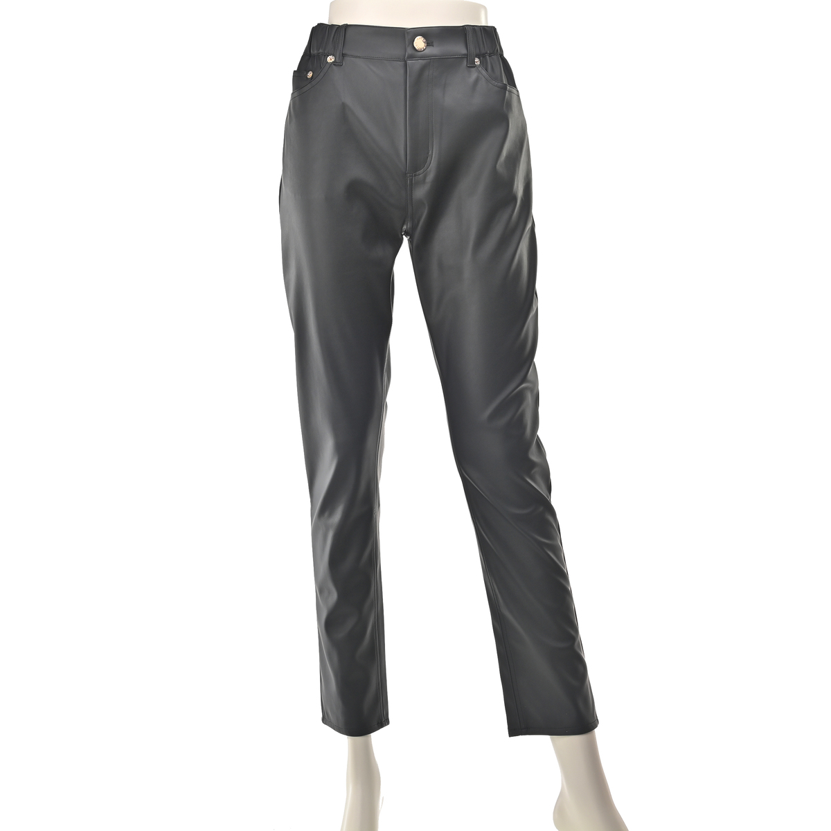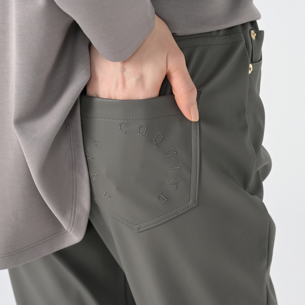 No. 752113 ANNE COQUINE 刺繍入りレザーライク美脚スリムパンツ