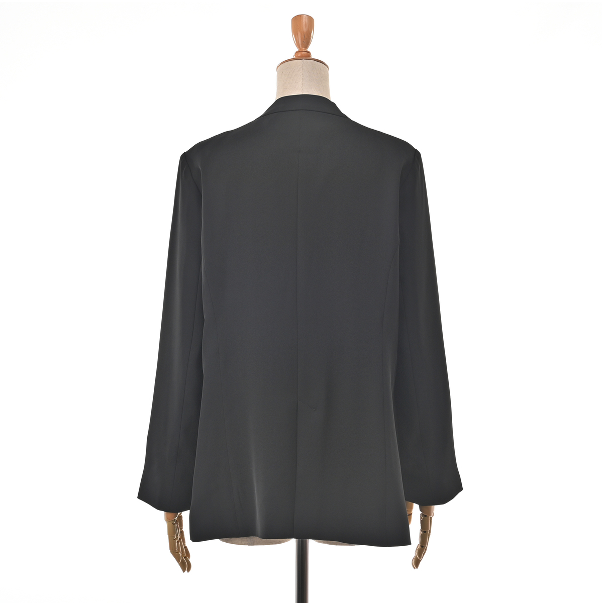 今回販売の中ではスーツにもできるこれが一番良かったと思う。漆黒の黒では無いのと、生地がツルッとしている点で高級感は最上とは言えず★ひとつ減。しかし、この価格にしては型紙とデザインがよく出来ていて、特に胸のある人に向いている。腕の長い私でも袖が若干長めだと思ったが、そこは流石、袖にボタンを付けていない所がよく考えられている。前のボタンデザインについてどうするか、難しい所だったと思う。礼服ではなく、あくまでもカジュアルジャケットに限られるのはこのボタンデザイン。この時期なので流行を取り入れつつ、もう少し、礼服(正装)寄りなスーツ可能なものを、濃いネイビー、ベージュ系で出していただいても良かったかな、と思いました。大人が着る服として、今後も期待しています。