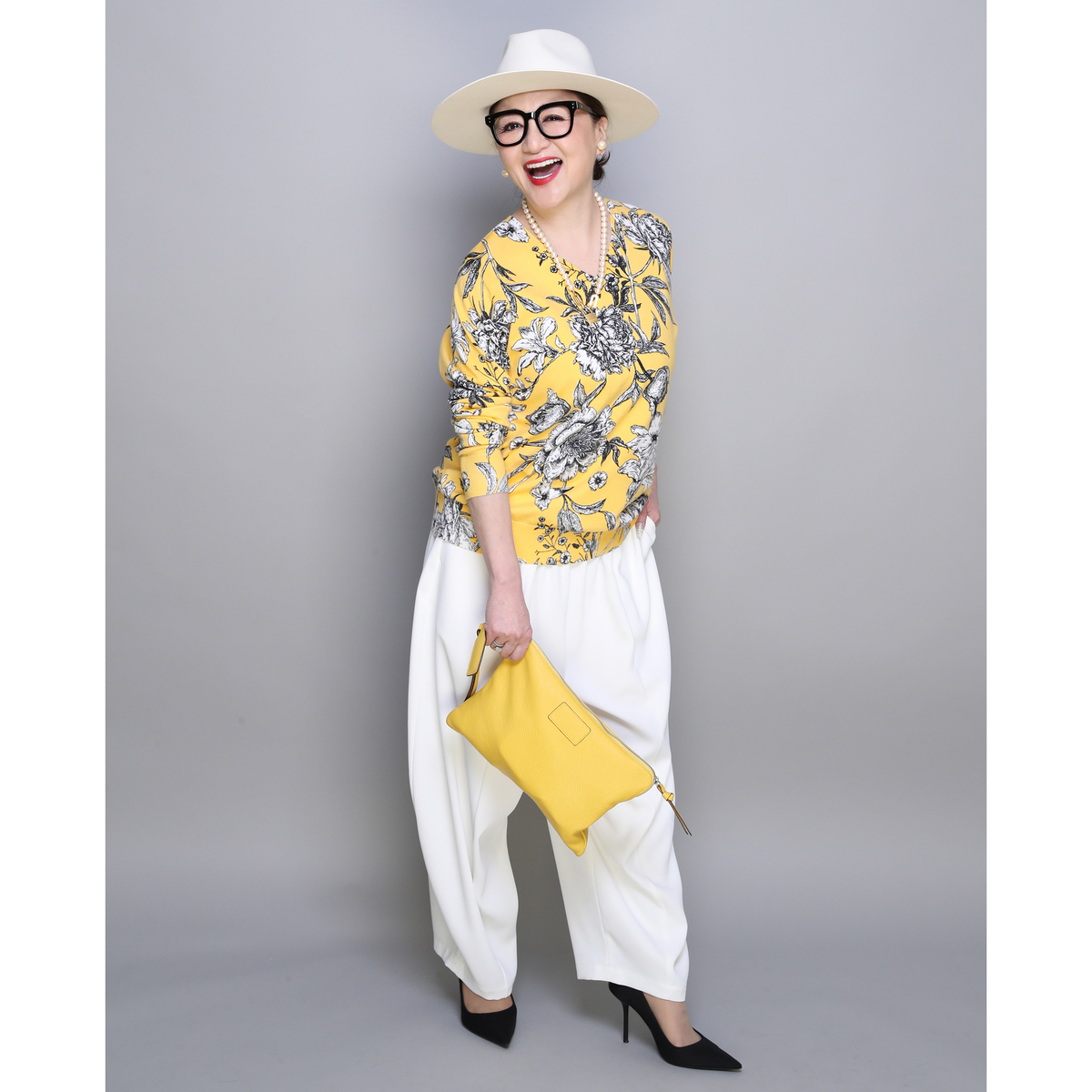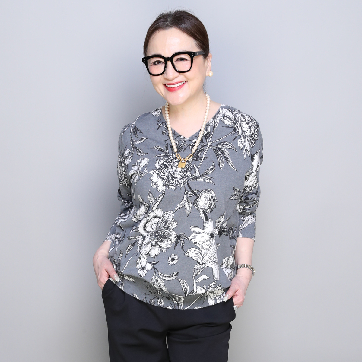 シンプルなパンツやスカートと合わせて、華やかなプリントを主役にしたコーディネートがおすすめ。お出かけやオフィスシーンにも活躍し、毎日に彩りを加えます