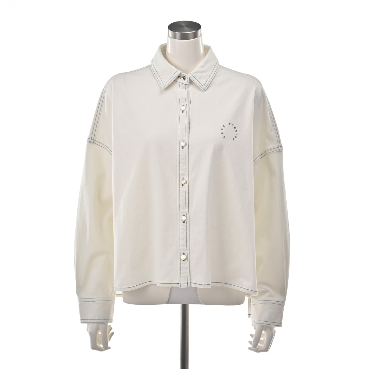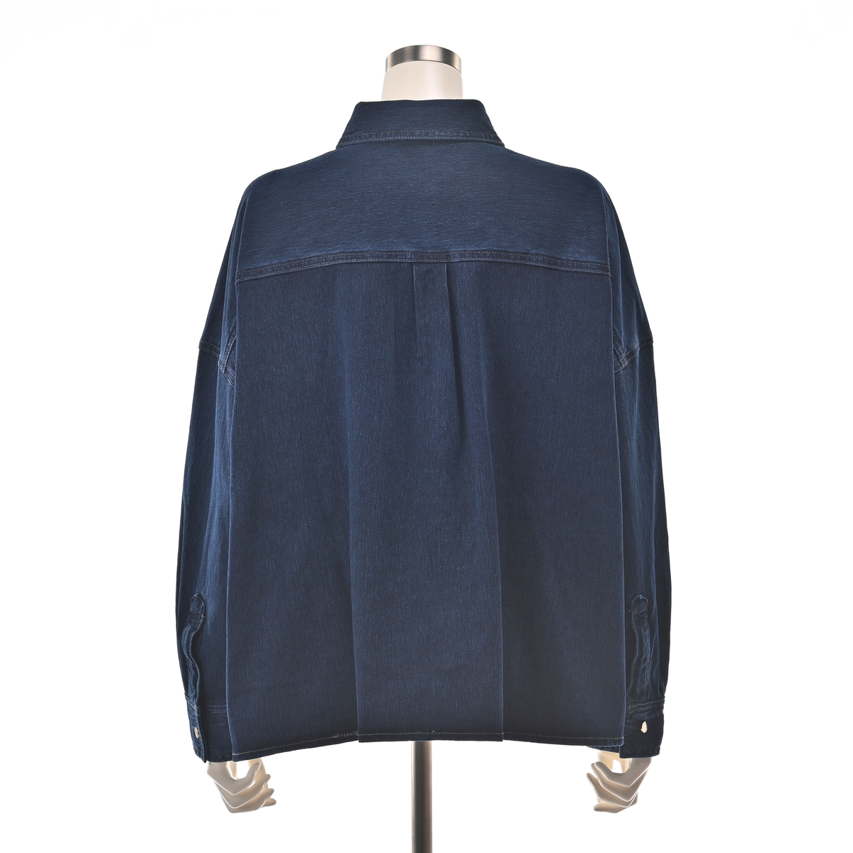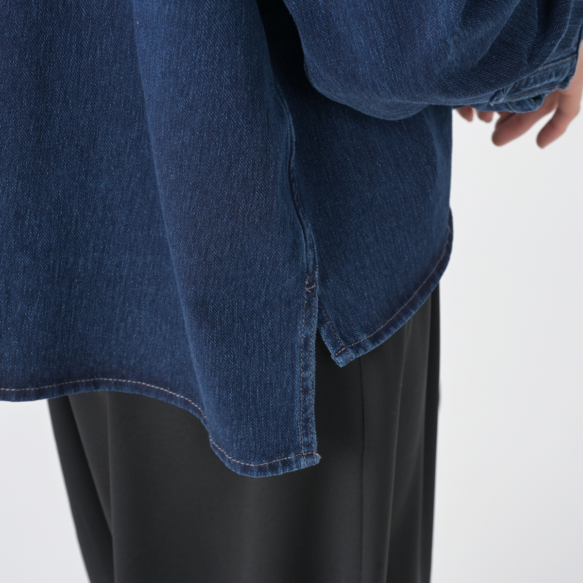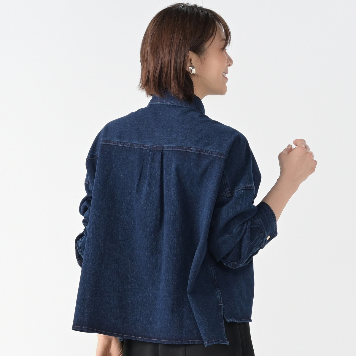 伸縮性のあるストレッチインレイカットソーデニムを使用したシャツ。カットソーなので柔らかく軽い着心地で、デニムジャケットのようにカジュアルにコーディネートできます