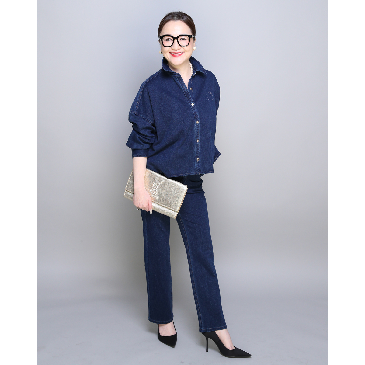No. 752123 ANNE COQUINE 刺繍入りストレッチインレイデニムシャツ