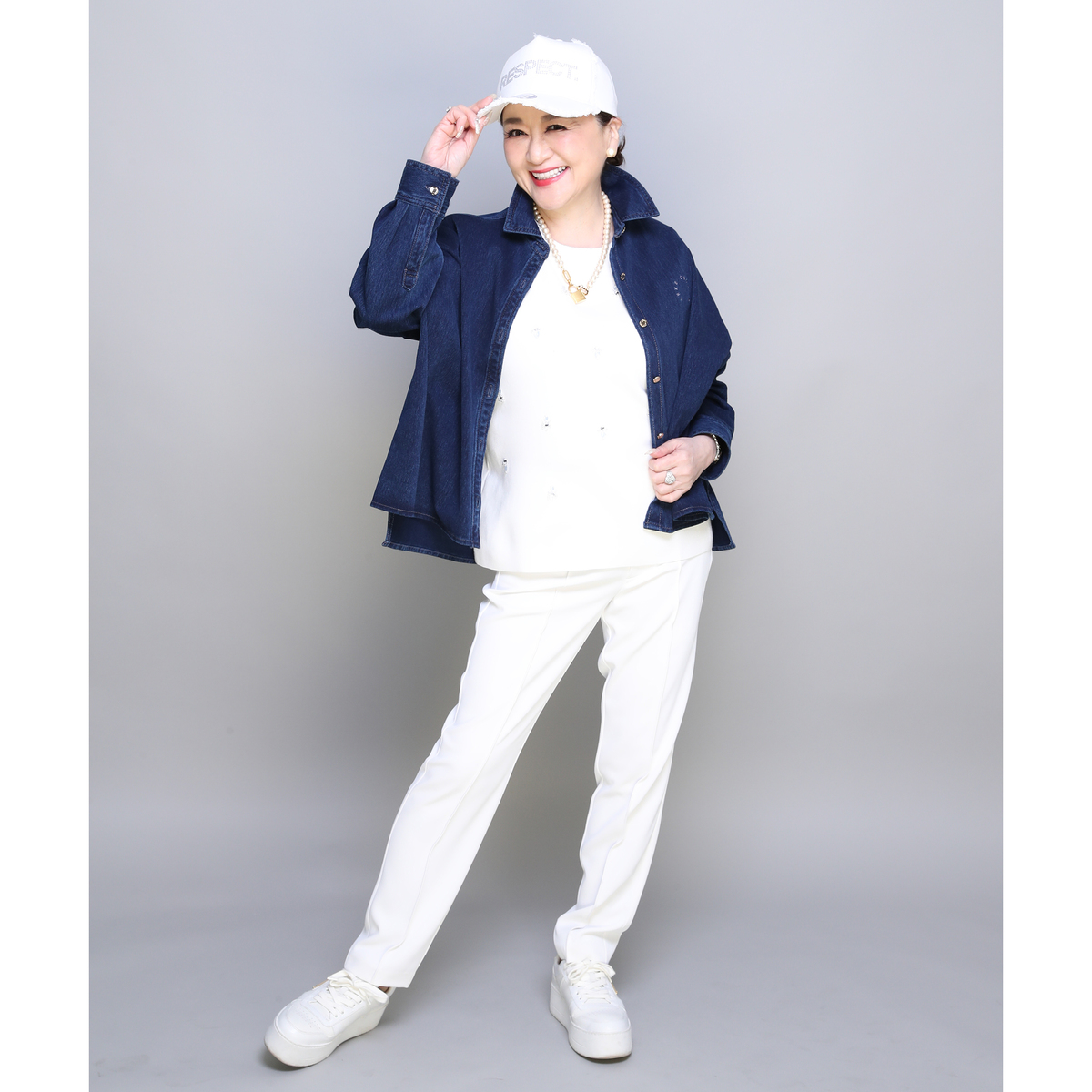 身幅が大きいのにすごくスタイル良く見えてびっくりしました。可愛いデザインです。パンツも一緒に買いました。セットアップでさらに素敵でした。あまりに予想以上だったのでレビューしたくなりました。流石です。