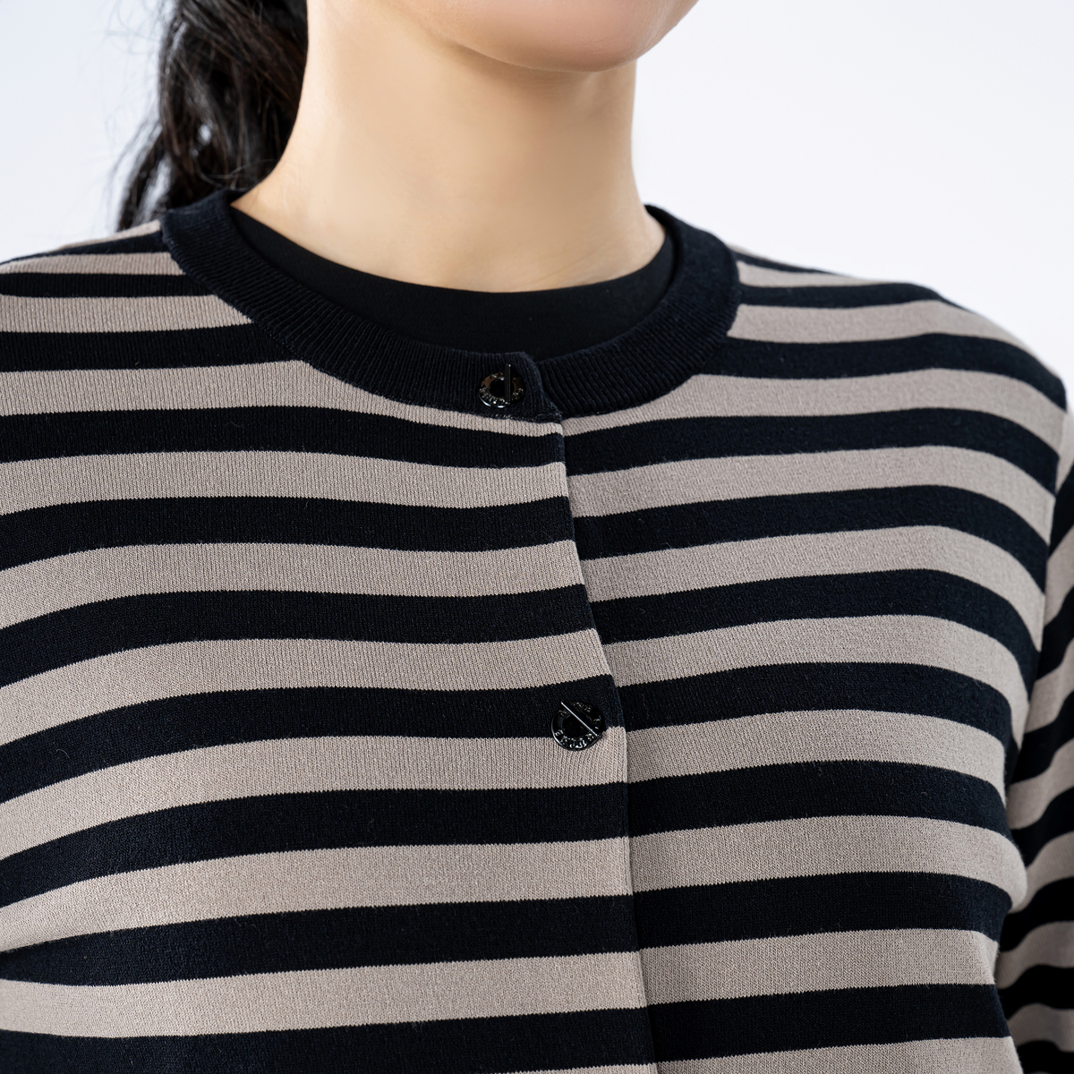 アンコキーヌで人気のコアスパンヤーンを採用し、付かず離れずのシルエットで着こなしやすいカーディガン。身頃同色のブランドロゴ入りトグルボタンが、シンプルなデザインにさりげないアクセントをプラス。洗濯機洗いが可能で、日常使いにも便利です