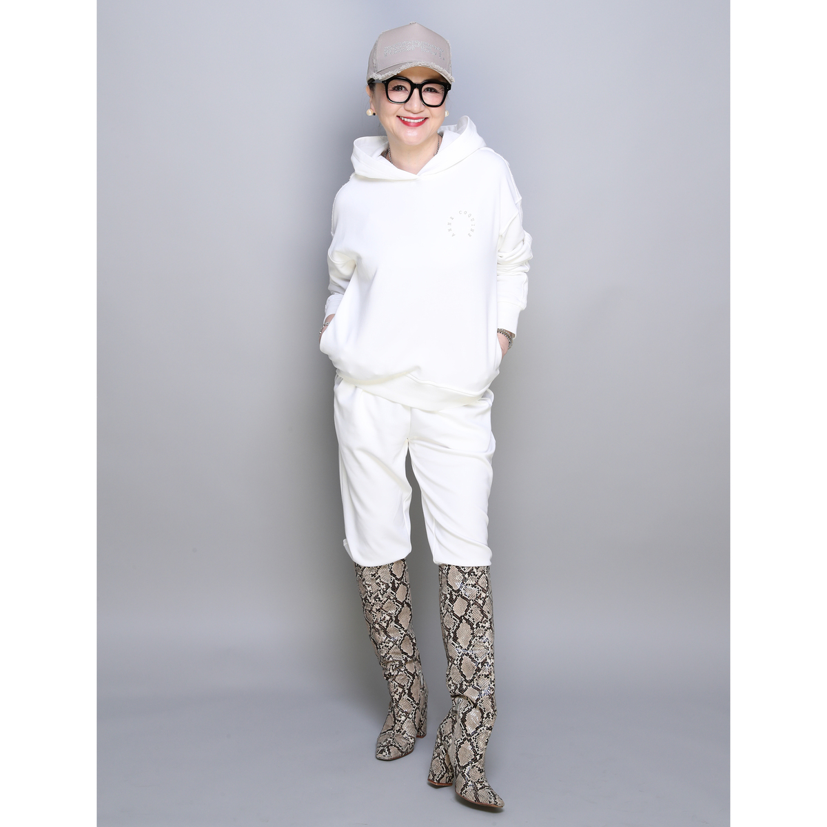 インレイデニムにあわせて購入しました。パンツのポケットの刺繍が同じなのですごく可愛いてす。なにせパンツが秀逸で短め丈のパーカーをカッコ良く見せてくれました。流石です。
