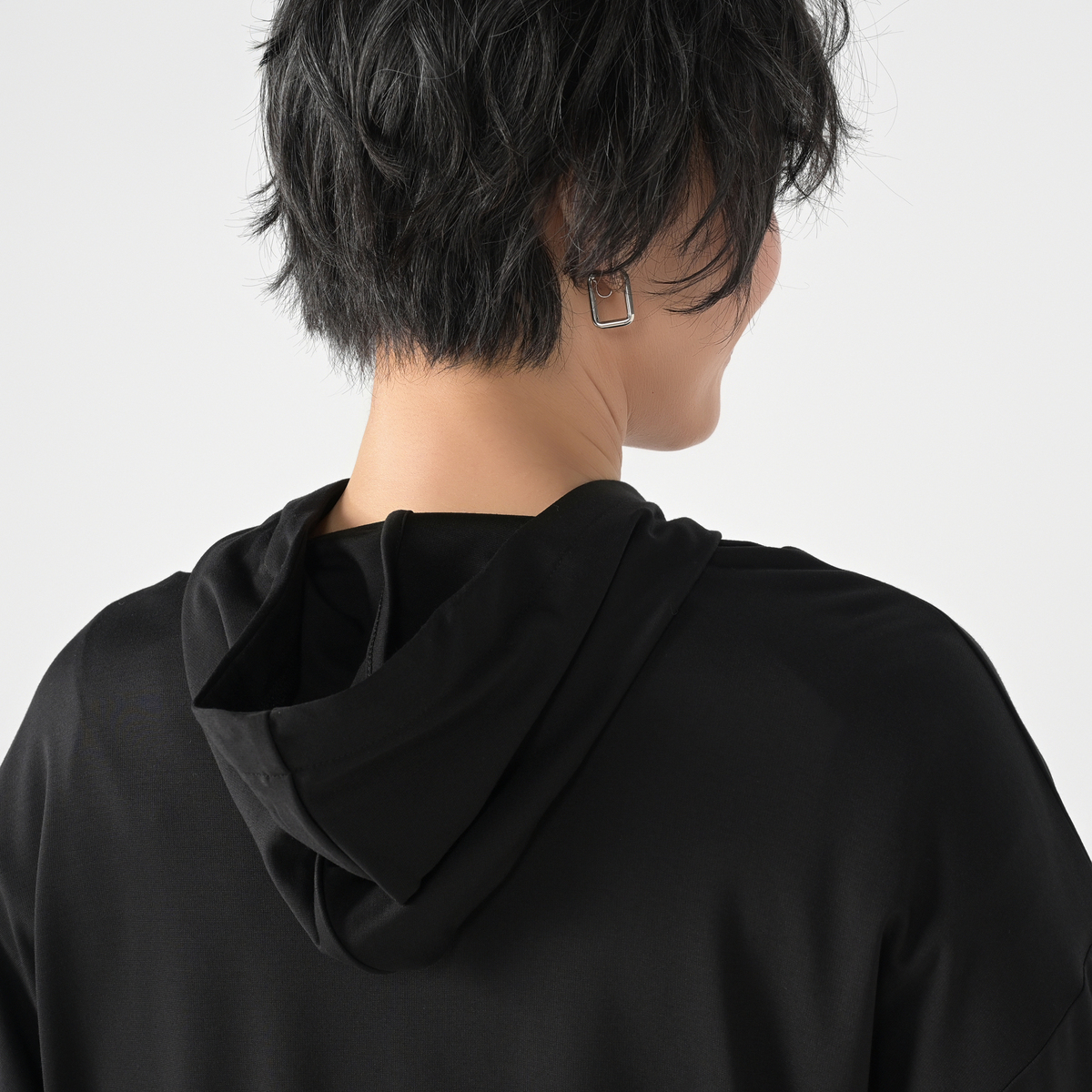 つるりと滑らかで手触りの良いカットソー素材を使用。適度な厚みがあり肉感を拾いにくく、ストレッチ感もありストレスフリーな着心地。ストンと裾に向かって自然に落ちるボックスシルエットで、ドロップショルダーが動きやすさを叶えます