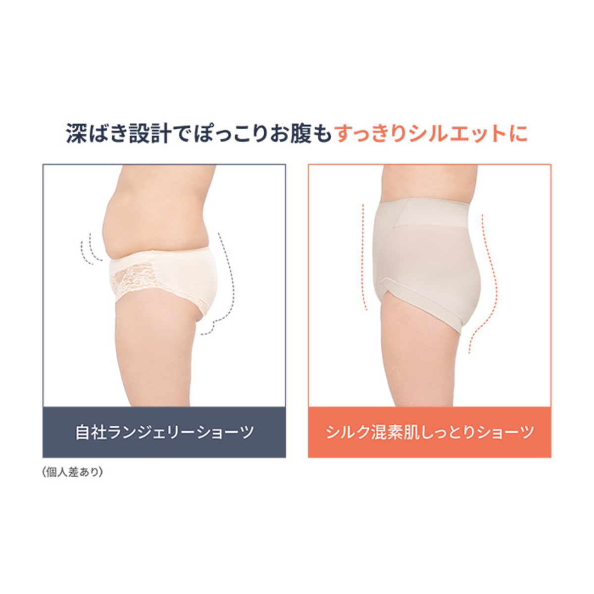 〇お腹押さえパネルですっきりシルエットに
