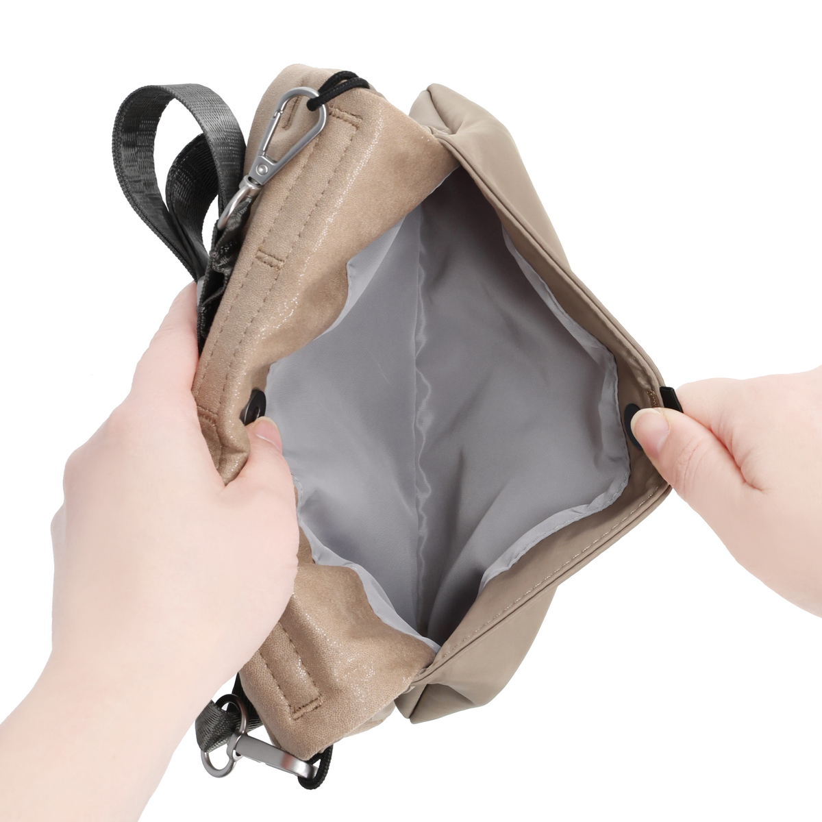 [サイズ(約)] 縦14×横21×厚み3cm ショルダー立ち上がり:44〜78cm [重量(約)]※付属品含む 200g [素材] 表地:人工皮革 ※裏地有 [お手入れ] 手洗い可 [仕様] 付属(取り外し可):ショルダーストラップ×1 開閉:ファスナー式、マグネット式 底ビョウ:無 [ポケット] 内側:メッシュ地ファスナーポケット×1 ファスナーポケット×1(内側に2つポケットあり) 外側:ファスナーポケット×1(内側に3つポケットあり) オープンポケット×1 [注意事項] ※洗濯機、乾燥機は使用不可です ※やわらかいブラシなどで軽く汚れを払った後、手洗いができます(洗濯機のご使用はお避け下さい) ※洗剤は漂白剤、柔軟仕上げ剤、蛍光剤の入っていない中性洗剤をお使いください ※手洗いの際、力を入れすぎると素材の風合いを損なうことがありますので優しく洗ってください(つけおき洗いはお避けください)その後は形を整えて風通しの良い日陰で充分に乾かしてください(アイロンやドライヤーなどの高熱による乾燥はお避けください) 【中国製】