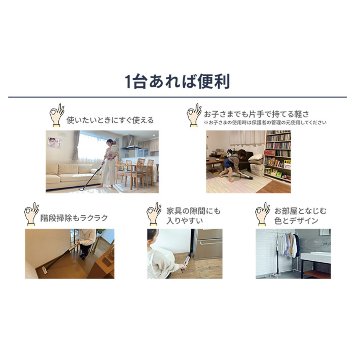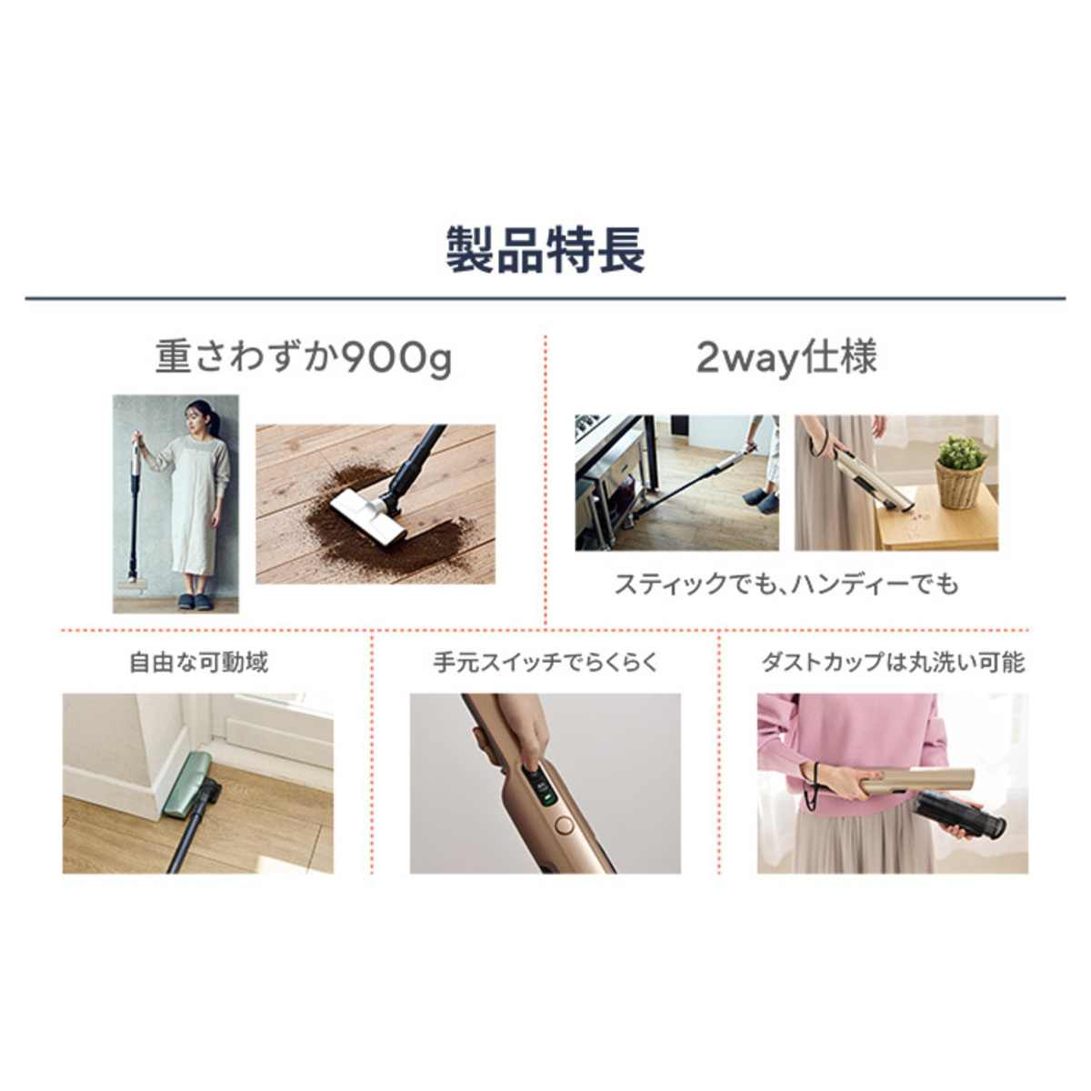 片手で軽々、パワフル吸引!