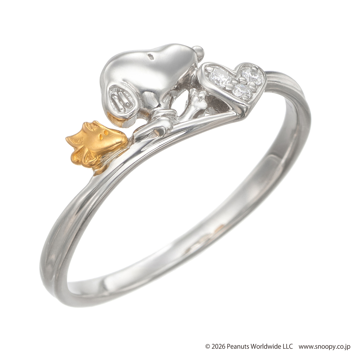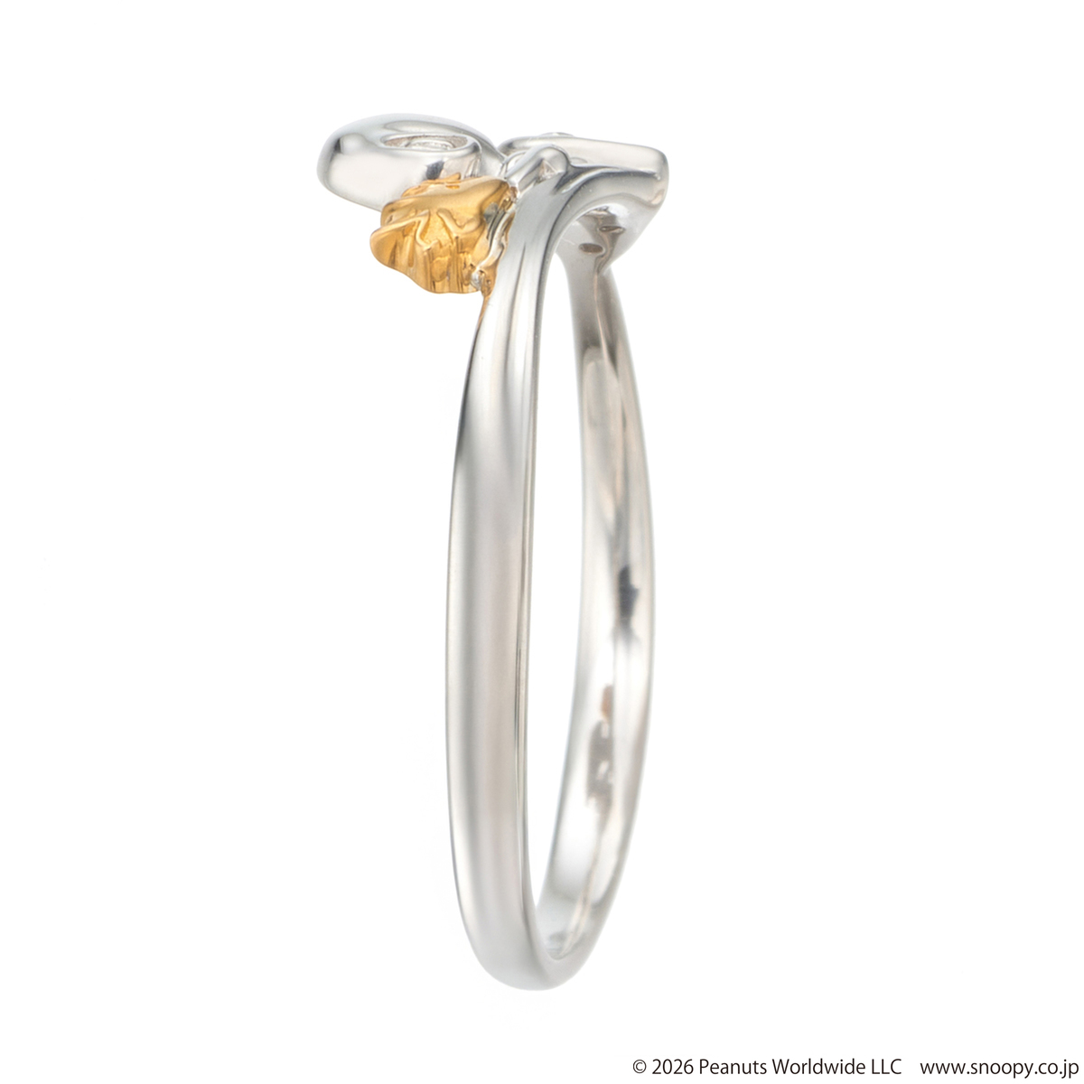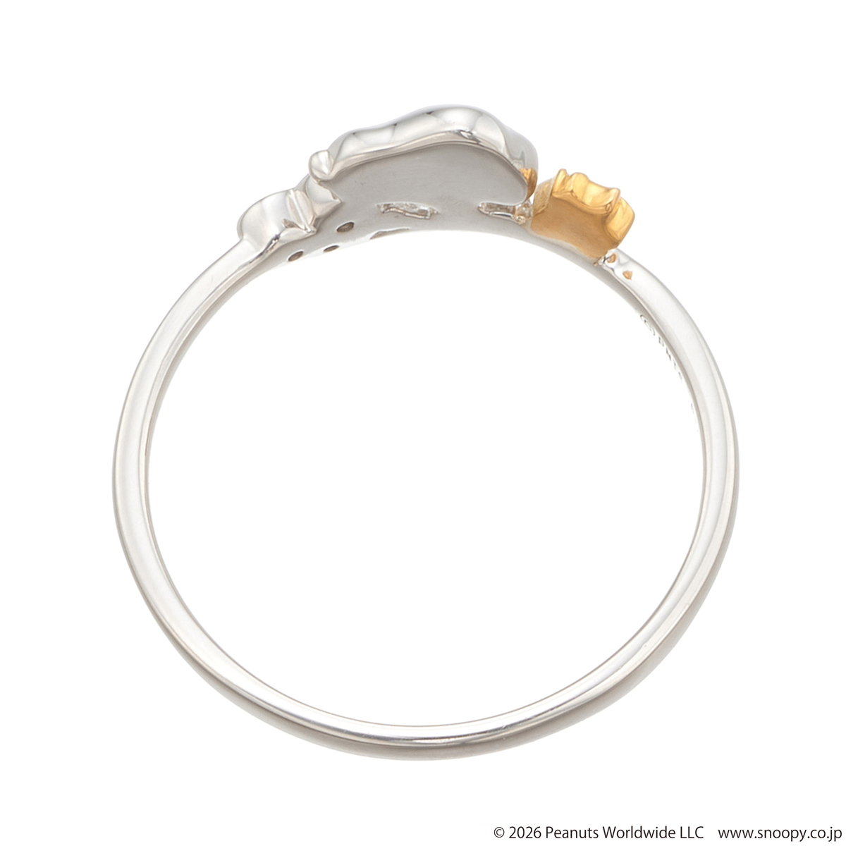 スヌーピーとウッドストックをモチーフにしたリングです。愛らしいデザインでありながら、純プラチナと純金を使い、大人のジュエリーに仕上げました