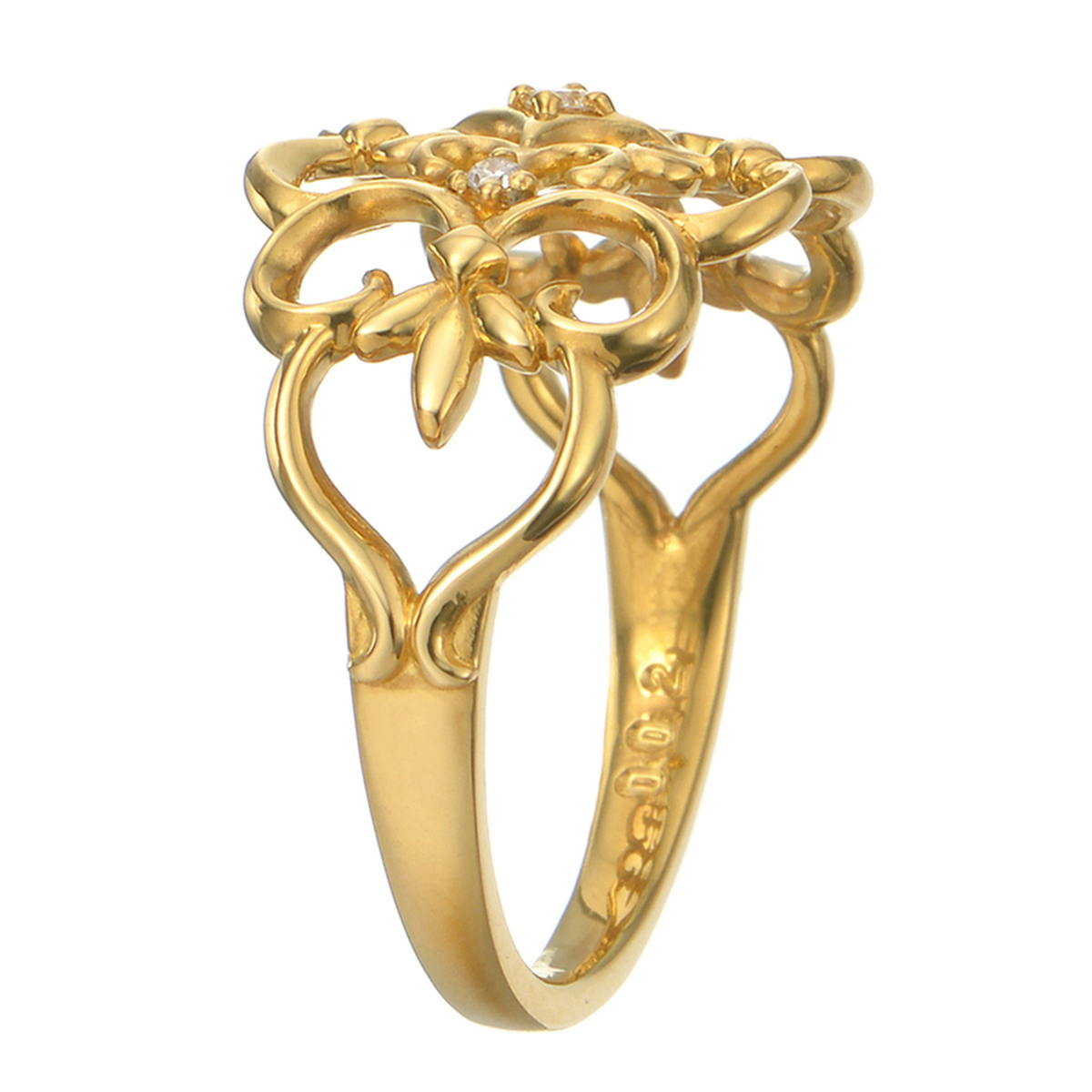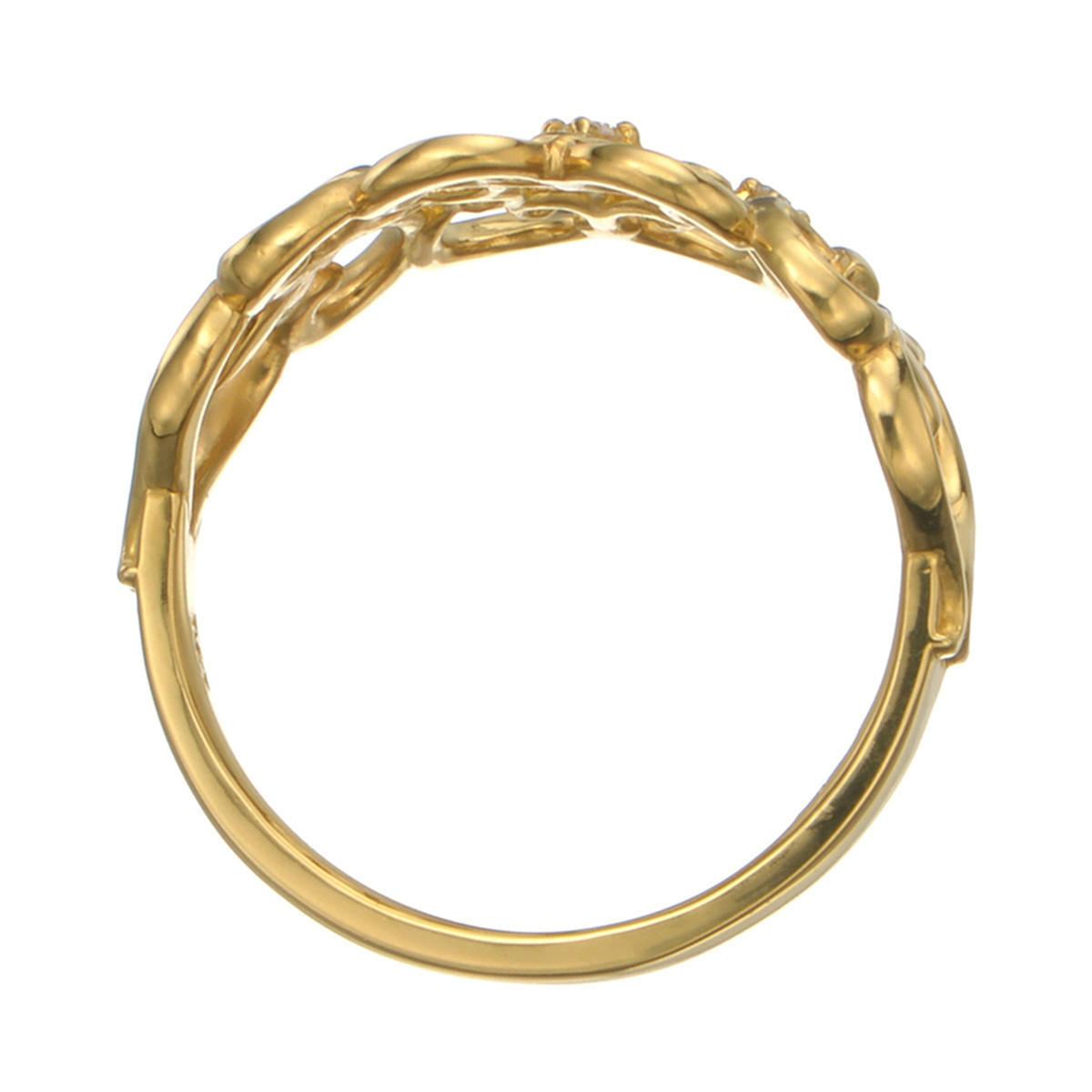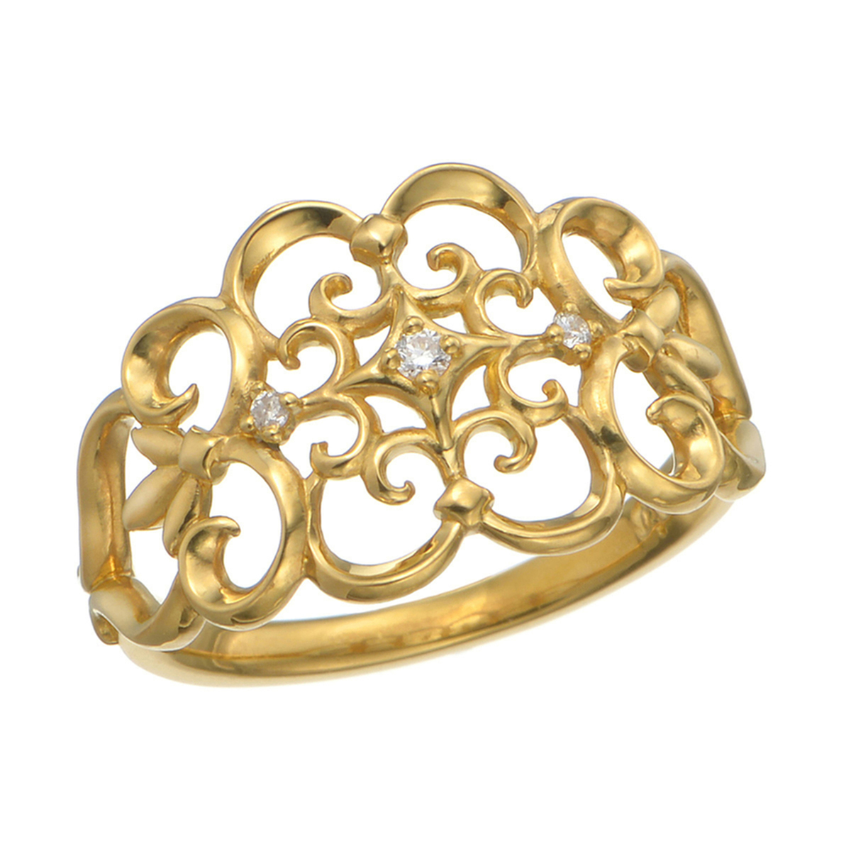 優しい曲線の透かし細工が施された幅広デザインのリング。さりげなくあしらわれたダイヤモンドが、きらりと上品に輝きます。透かしにより軽やかでエアリーな印象を与え、日常使いにもおすすめです