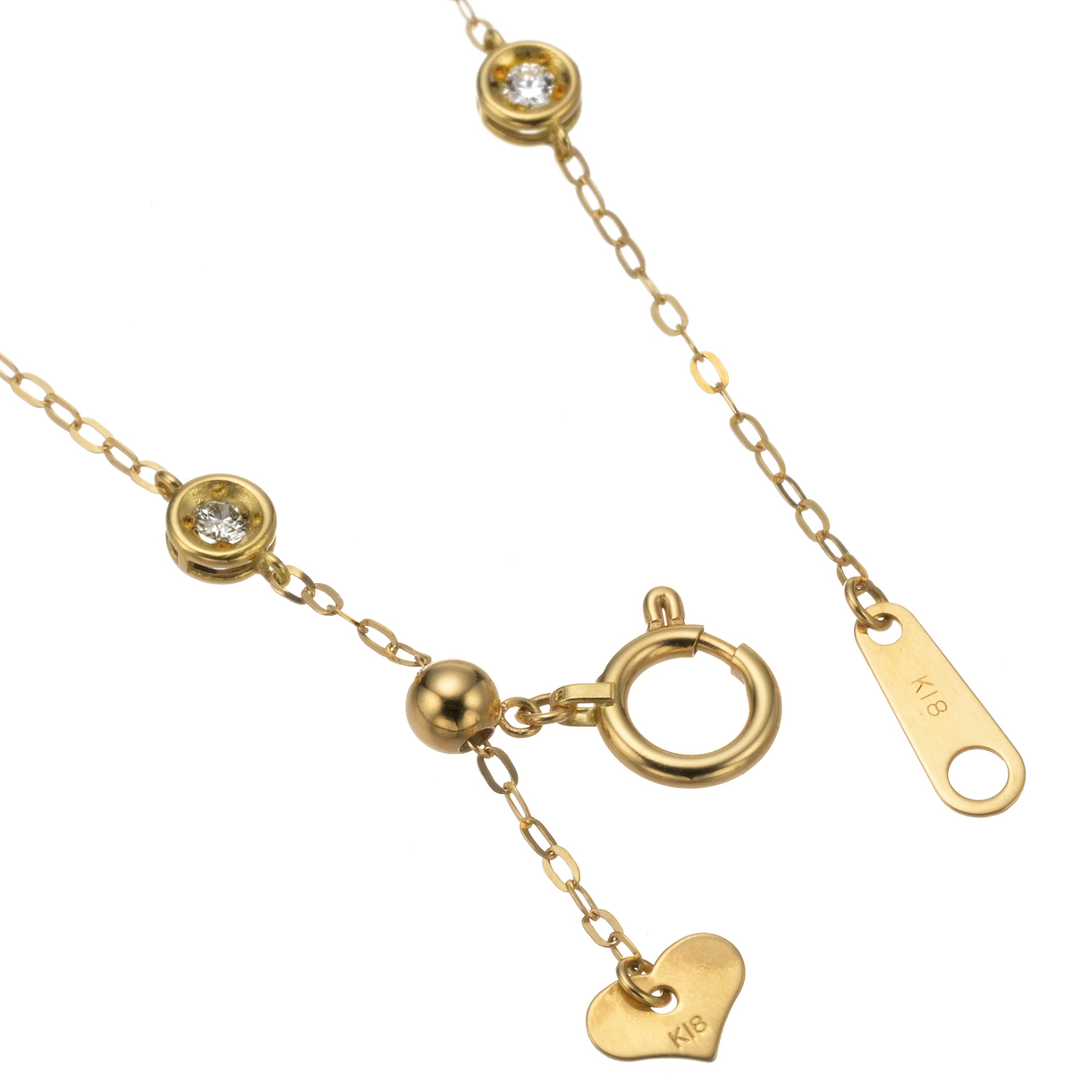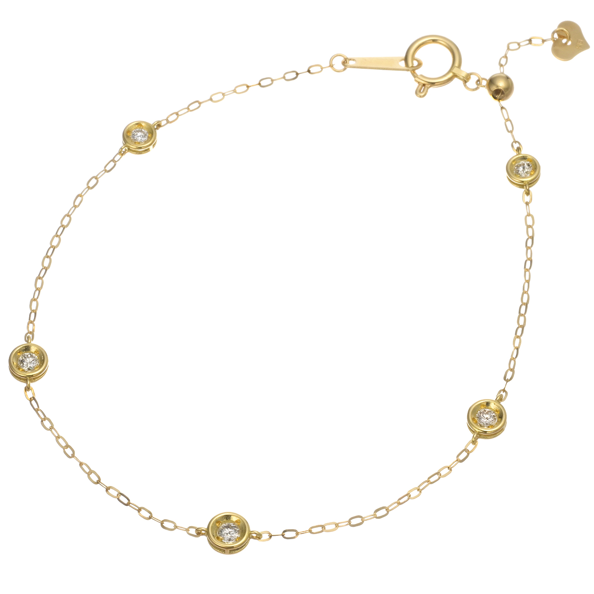 素材:[ダイヤモンド] ラウンドブリリアントカット 爪留め 5石 合計0.15ctUP 総重量(約) 0.9g 長さ(約) 16.0〜18.0cm 幅(約) 大:4.0mm 小:1.0mm チェーンの形状 アズキ 留具の形状 引き輪 アジャスターの有無 有 (スライド式) チャームの有無 無 [地金] 18Kイエローゴールド ■受注発注商品のためデザイン・価値に影響のない範囲で仕様が変わる場合がございます ■素材の大きさ・形・色合い、製品のサイズは1点1点多少異なります 【日本製】