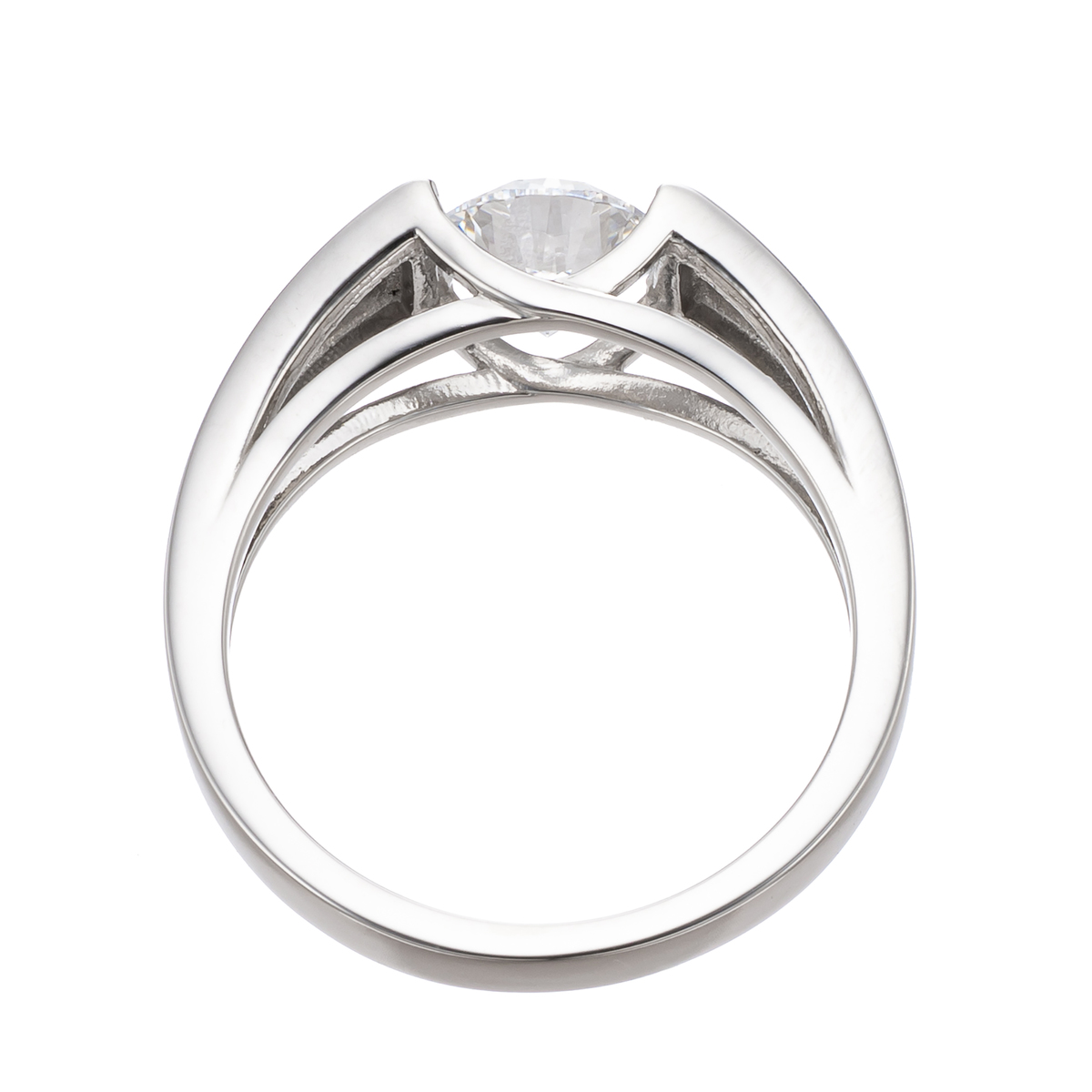 Dカラーダイヤモンドをシンプルなリングにお仕立てしました。両端を挟み込み、引っかかりが少なく、ダイヤモンドを大きく見せてくれるデザイン。ダイヤモンドの美しさが際立ち、洗練された印象をもたらします
