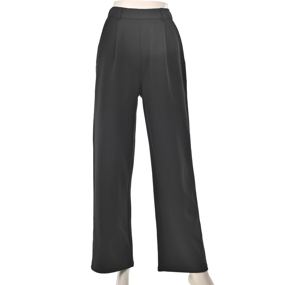 綿とポリエステルを混紡させたダンボール素材のストレートパンツ。ハリ感と光沢感があり、きれいなラインを引き立てます。デイリー使いしやすい肌触りの良さと、取り扱いやすさを兼ね備えた素材です