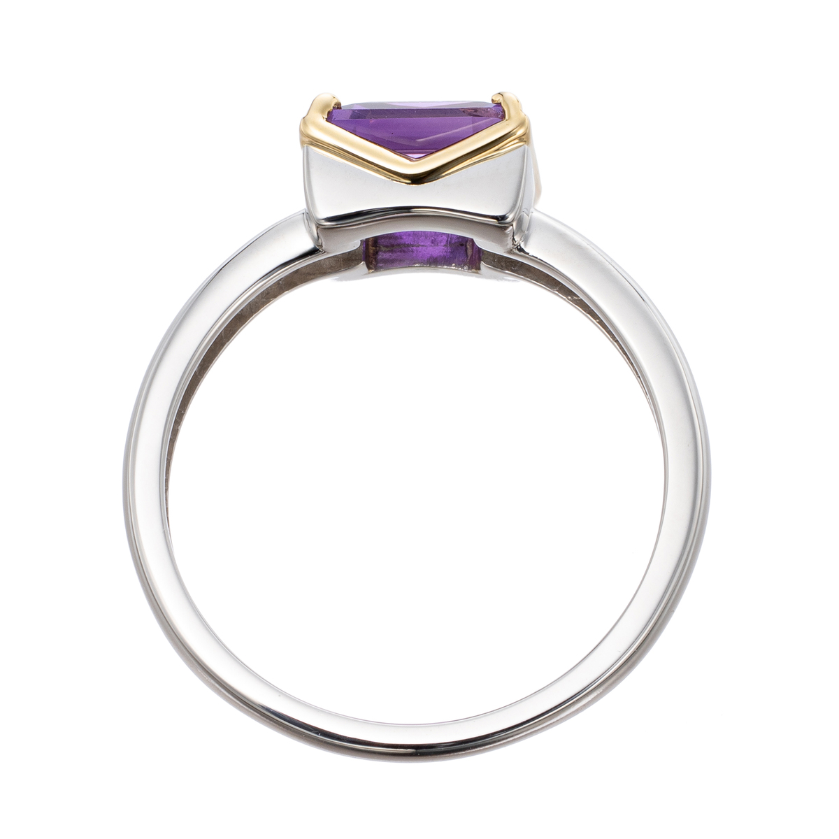色鮮やかなパープルが美しいアメシストを引き立てるように、石の周りにはイエローゴールドを使用。アームのプラチナとのコントラストが美しいリングです
