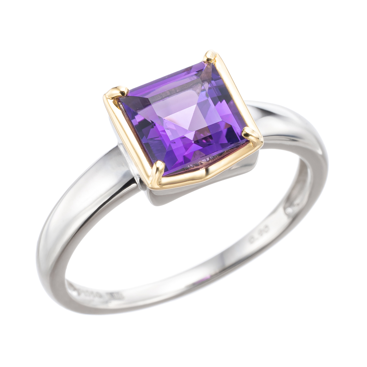 素材:[アメシスト] スクエアカット 爪留め 1石 0.90ctUP 最大幅(約) 7.0mm 最小幅(約) 1.0mm 総重量(約) 3.0g [地金] プラチナ950(本体)、18Kイエローゴールド(一部) ■サイズ直し対象外 ■受注発注商品のためデザイン・価値に影響のない範囲で仕様が変わる場合がございます ■素材の大きさ・形・色合い、製品のサイズは1点1点多少異なります 【日本製(アメシストはザンビア産)】