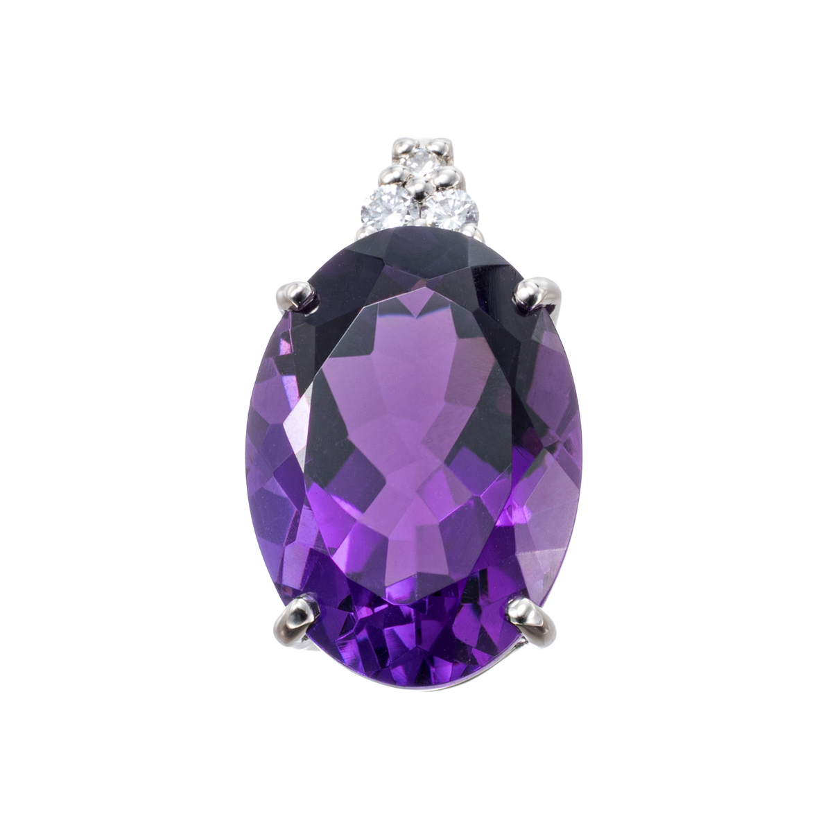 美しく色鮮やかなアメシストをあしらったペンダントヘッドです。メインストーンを引き立てるようにダイヤモンドを配し、コーディネートしやすい上品なデザインに仕上げました