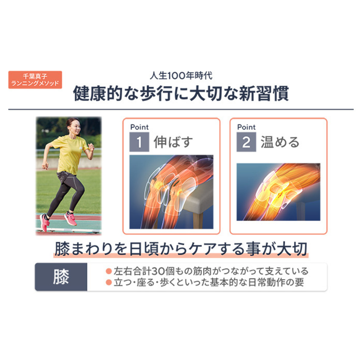 元マラソン選手千葉真子さん監修の脚用ケアアイテム「エアフット」。エアーバッグにより物理的に筋肉を伸ばすケアと、温熱機能により温めるケアができます