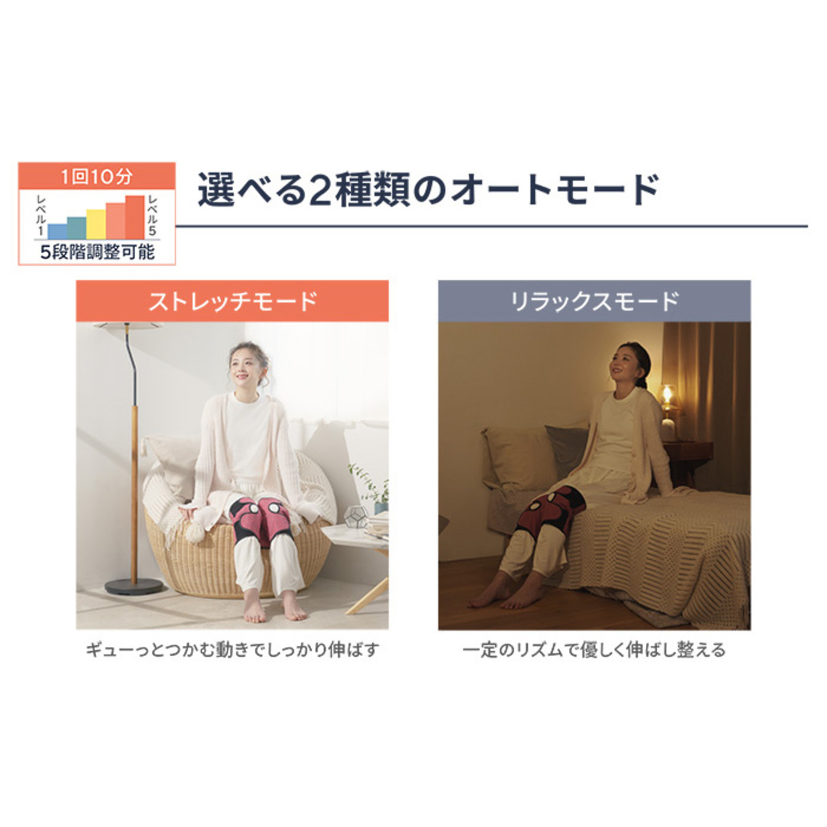 手技パターンを再現した合計25種類(*4)のエアーの動きで脚をケア。深く押し込む動きでしっかり伸ばす"ストレッチモード"、一定のリズムでやさしく伸ばす"リラックスモード"の2つの自動プログラムを搭載しています