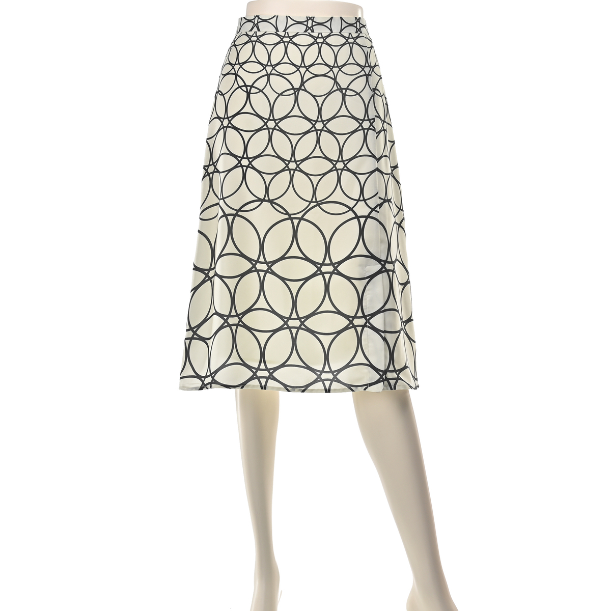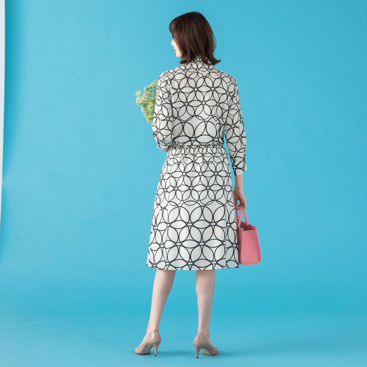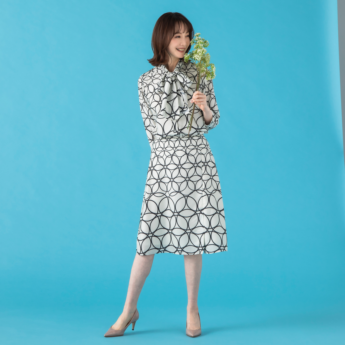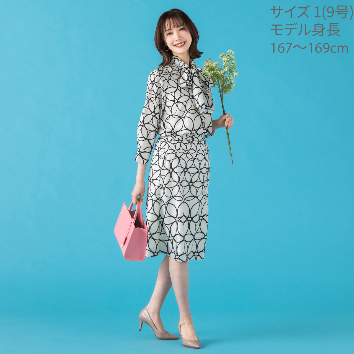 [商品寸法(ヌード)cm] サイズ ウエスト ヒップ 丈 1(9号):66(64) 101(91) 65 2(11号):69(67) 104(93) 65 3(13号):73(70) 108(95) 65 4(15号):77(73) 112(97) 65 [ウエストゴム] 後ろ一部に有 [素材] 表地・裏地:ポリエステル100% [お手入れ] 手洗い可 [注意事項] ※商品寸法の誤差は多少発生します。ご了承下さい ※アイロンはあて布を使用 ※素材の特性上多少縮むことがあります ※長時間の浸漬や、つけ置き洗い、濡れたままの放置は避け、洗濯後形を整えて、すばやく干して下さい ※もみ洗いは避け、軽く押し洗いして下さい ※ファスナーは閉じて洗って下さい ※この商品は強い光(又は照明)を長時間受けますと、変色の恐れが有りますので、着用及び保管の際にはご注意下さい ※素材の特性上、縫い目部分に極度な力が加わると縫目が開いたり、目寄れ(織糸が滑り目が開く)する性質を持っています。この点を充分ご留意の上ご着用下さい ※この商品は、付属品にゴムを使用しております。ゴム特有性質上、時間の経過とともにゴムの部分が劣化したり、変色する場合があります ※この商品は、糸及び組織の性質上引掛け、引掛り易い性質を持っております。着用、着脱時にはベルト、バッグ、アクセサリー、周囲の壁など表面の粗い物との摩擦や引掛りに充分ご注意下さい ※アイボリー:パネルプリントのため、サイズや裁断位置によりプリントの出方に個体差がございます ※ネイビー:大柄で複雑なプリントのため、サイズや裁断位置によりプリントの出方に個体差がございます 【中国製】
