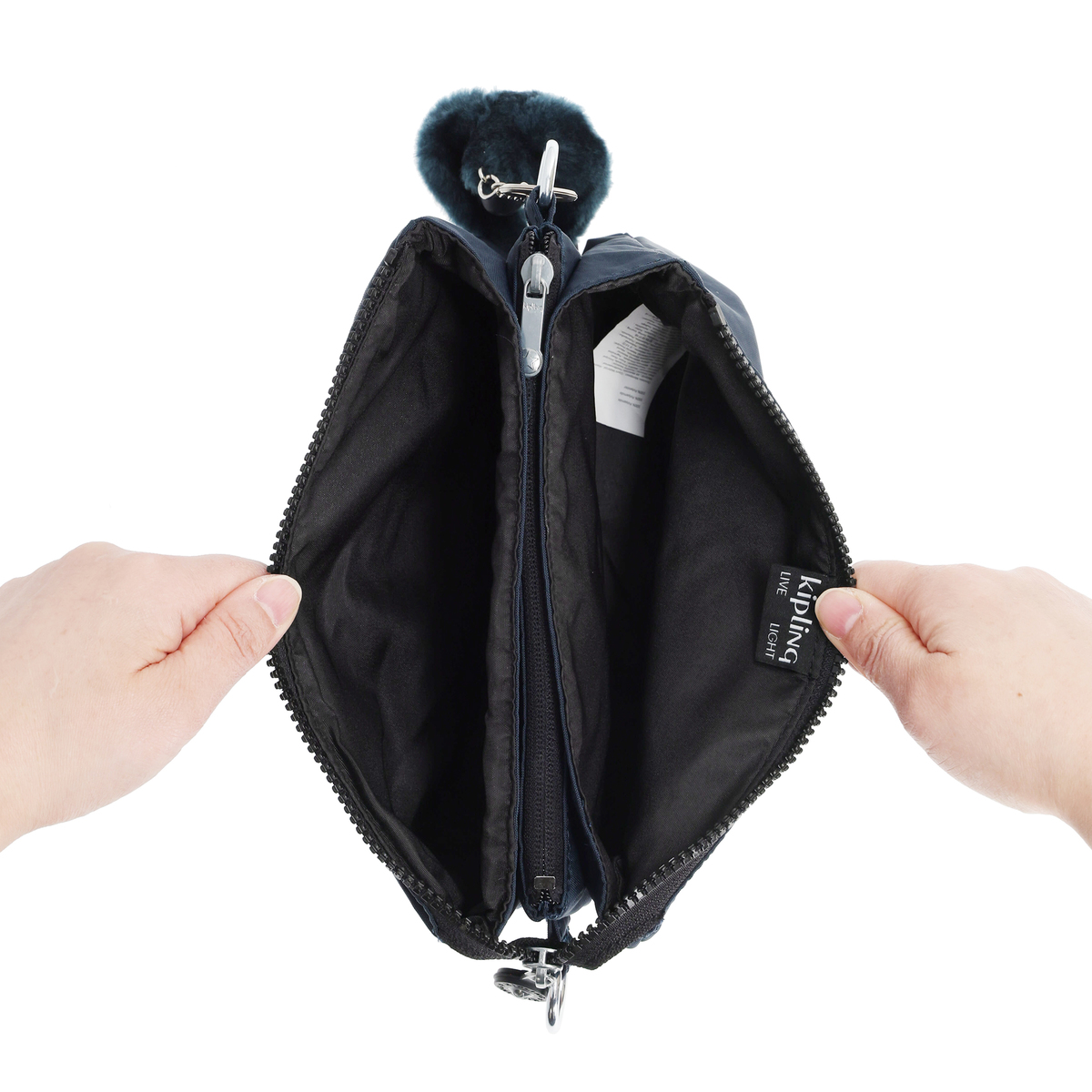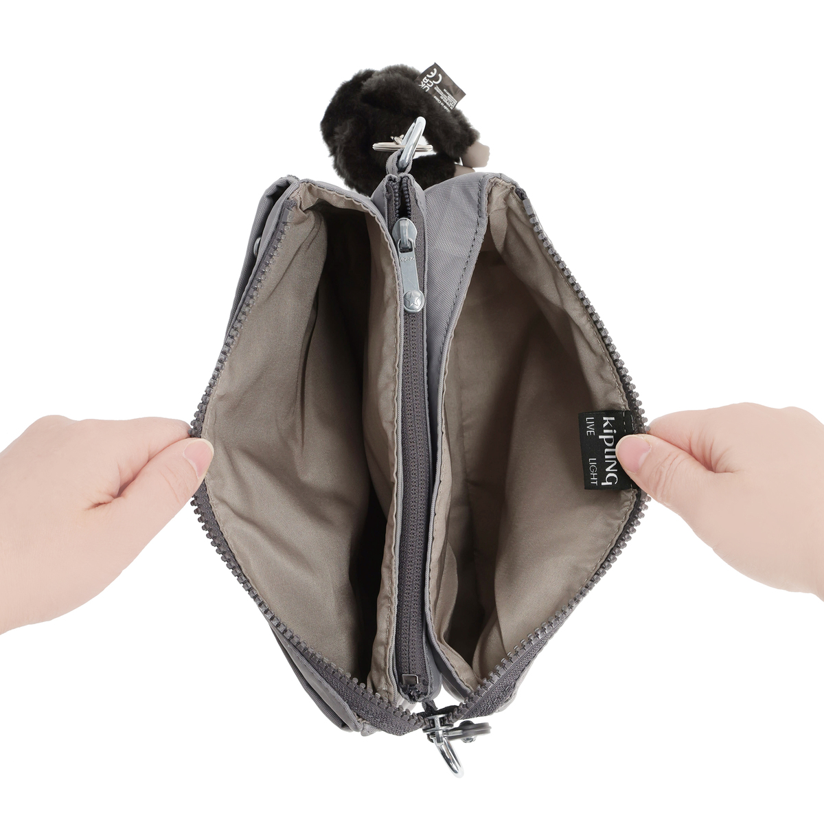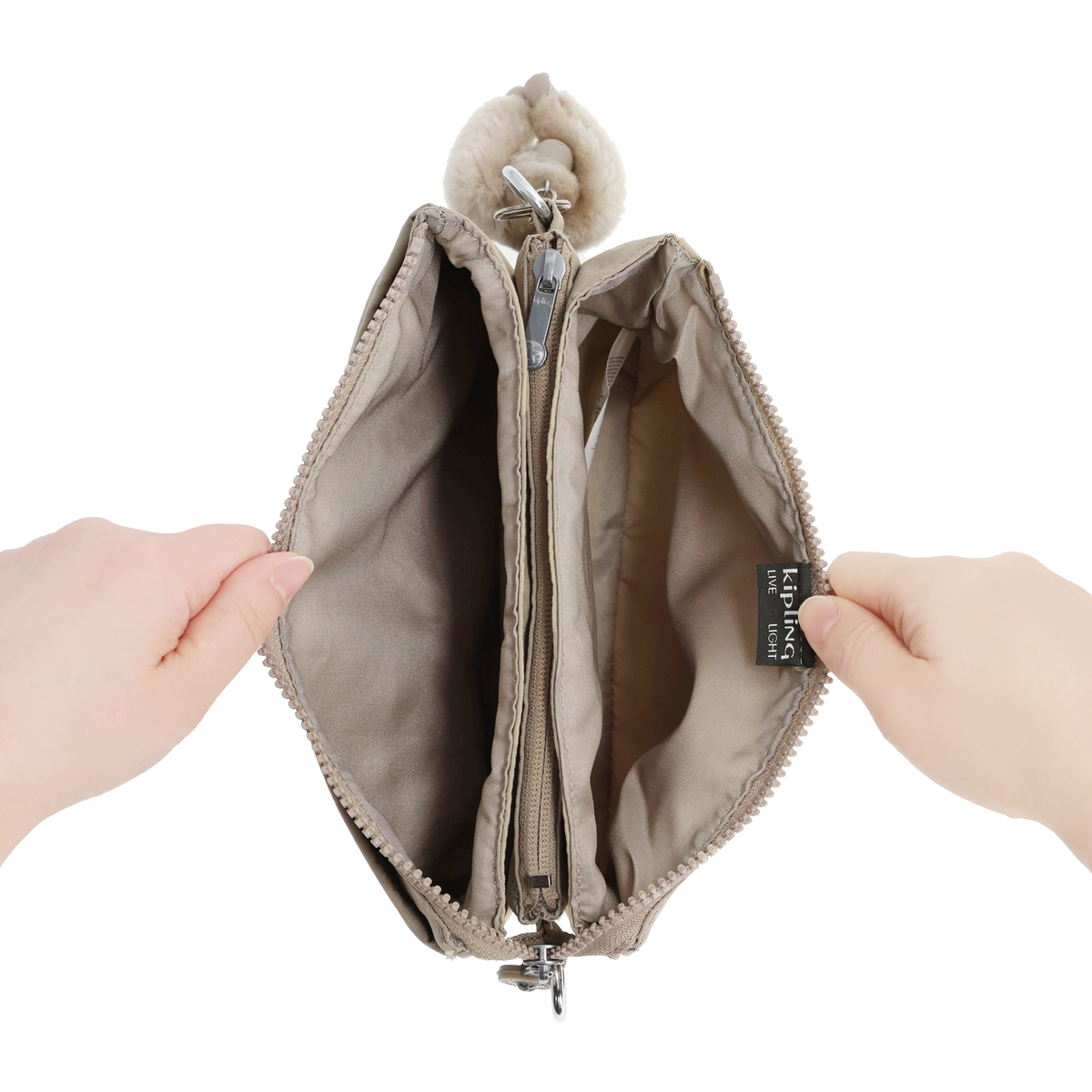 シンプルなデザインのポシェット。内部はファスナーポケットとオープンスペースに分かれているので、荷物の整理もしやすく。ショルダーベルトは長さ調整ができ、短くすればミニショルダーバッグに。ベルトを外せば、ポーチやクラッチバッグとして使えます
