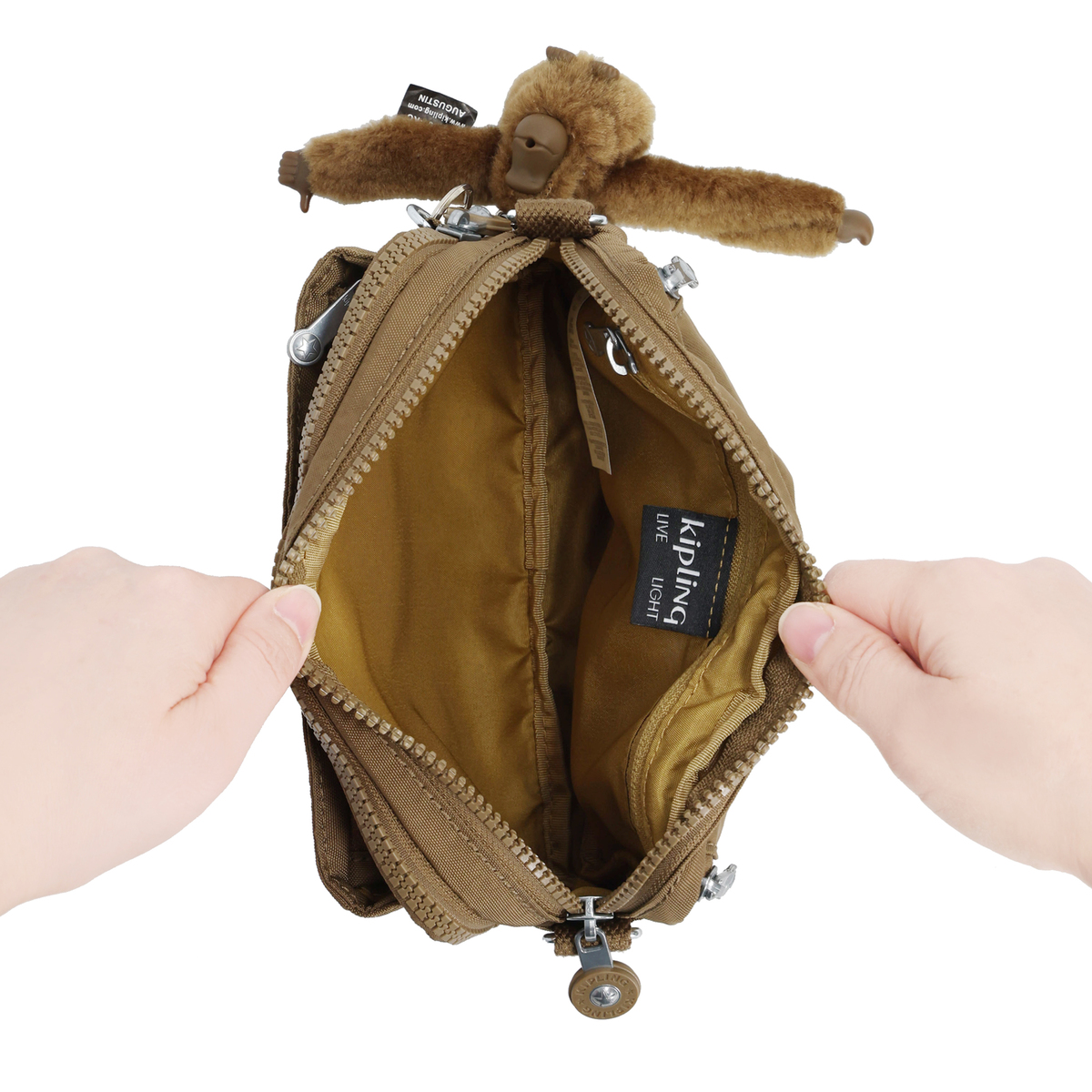 スムースカーキとサプライズピンクの表地には56%のリサイクルナイロン、全色の裏地には100%のリサイクルポリエステルを使用。環境に配慮した素材を使用しています