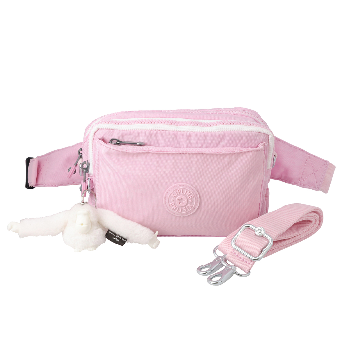 [サイズ(約)] 縦13.5×横20×マチ6cm ウエストベルト長さ:62〜116cm ショルダー立ち上がり:33〜67.5cm [重量(約)]※付属品含む 280g [素材] ナイロン ※裏地有 [仕様] 付属(取り外し可):チャーム×1、ショルダーベルト×1 開閉:ファスナー式×2 (二層) 底ビョウ:無 [ポケット] <内側> ファスナーポケット×1 <外側> 前面:ファスナーポケット×1 後面:ベルト収納ポケット(ファスナー式) [注意事項] ※直射日光や蛍光灯の影響で変色する場合がありますのでご了承ください 【カンボジア製】
