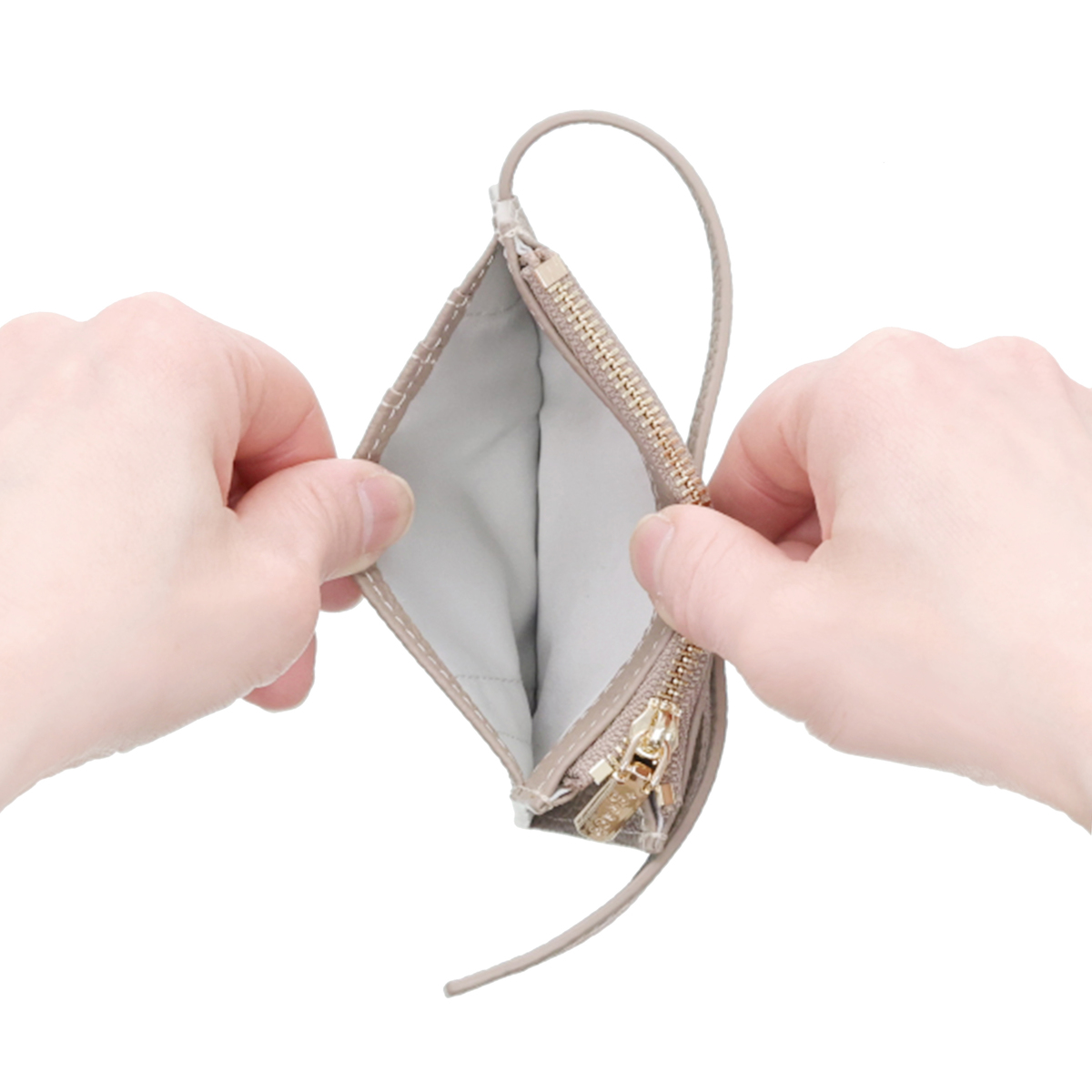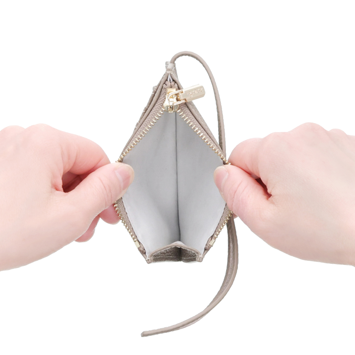 表面に凹凸のあるシュリンクレザーを使用したスマートポシェットスリムパース付。上質な本革レザーで柔らかく手になじみ、傷や汚れが目立ちにくく、長く愛用いただけます。付属のショルダーで斜めがけも可能で、トレンドを意識したデザインとサイズにこだわっています