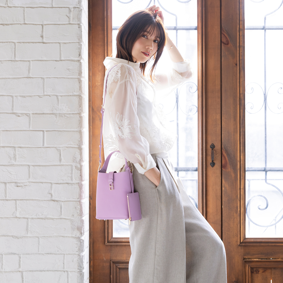 [サイズ(約)] 縦20×横17×マチ8.5cm ハンドル立ち上がり:11cm ショルダー立ち上がり:50〜58cm [重量(約)]※付属品含む 420g [素材] 表地:牛革 持ち手、ショルダーストラップ:牛革 ※裏地有 [仕様] 付属(取り外し可):ショルダーストラップ×1、スリムパース×1、巾着袋×1 開閉:フラップ式隠しマグネット式 底ビョウ:有 [ポケット] <ポシェット> 内側:中央仕切り兼オープンポケット×1、カード入れ×4 外側:無 <スリムパース> [サイズ(約)] 縦8.0×横12.0cm [ポケット] ファスナーポケット×1、カード入れ×3、オープンポケット×1 【中国製】 [注意事項] ※摩擦や水濡れ等により、色落ちし、衣類などへ色移りする場合がございます。薄い色の洋服との組み合わせや雨の日のご使用は十分にご注意ください ※著しく重いものや、鋭利なものを入れた場合、通常のご使用でも型崩れを起こしたり、付属品及び製品が破損する恐れがありますので、お取り扱いにはご注意ください ※ファスナー・ホック・ボタン・金具・ストラップベルト等の付属品は正しくご使用ください。誤った使用をされた場合、もしくは極度の負担がかかった場合は、付属物及び製品が破損することがありますので、お取り扱いにはご注意ください ※水分やアルコールを含む製品(香水、ウエットティッシュなど)や油分を含む製品(化粧品など)に直接触れないようご注意ください <磁石を使用した製品について> ※磁石を飲み込んでしまった場合、重大事故につながる恐れがありますので、小さなお子様やペットの手の届かないところに保管してください ※万が一磁石を誤飲した場合は、直ちに医師の診察を受けてください ※マグネット近くに磁気カードなどを近づけると磁気データが消えてしまうことがあります <革製品のお手入れ方法及び保存方法> ※日常のお手入れとして、使用後はブラシでホコリや汚れを払ってください ※濡れた場合は、乾いたやわらかい布で手早く水気を取り、風通しの良い場所で陰干ししてください ※素材に合ったクリーナーやクリーム等を説明書に従って使用してください ※直射日光、高温な場所、湿度の高い場所での保管は、退色、色落ち、変形、型崩れ、質感の変化の原因となりますので、お避け下さい <防カビ剤が入っている場合> ※使用する製品にワサビの香りが移ることがありますが、袋から出し通気性の良い場所に置くことで香りは軽減されます