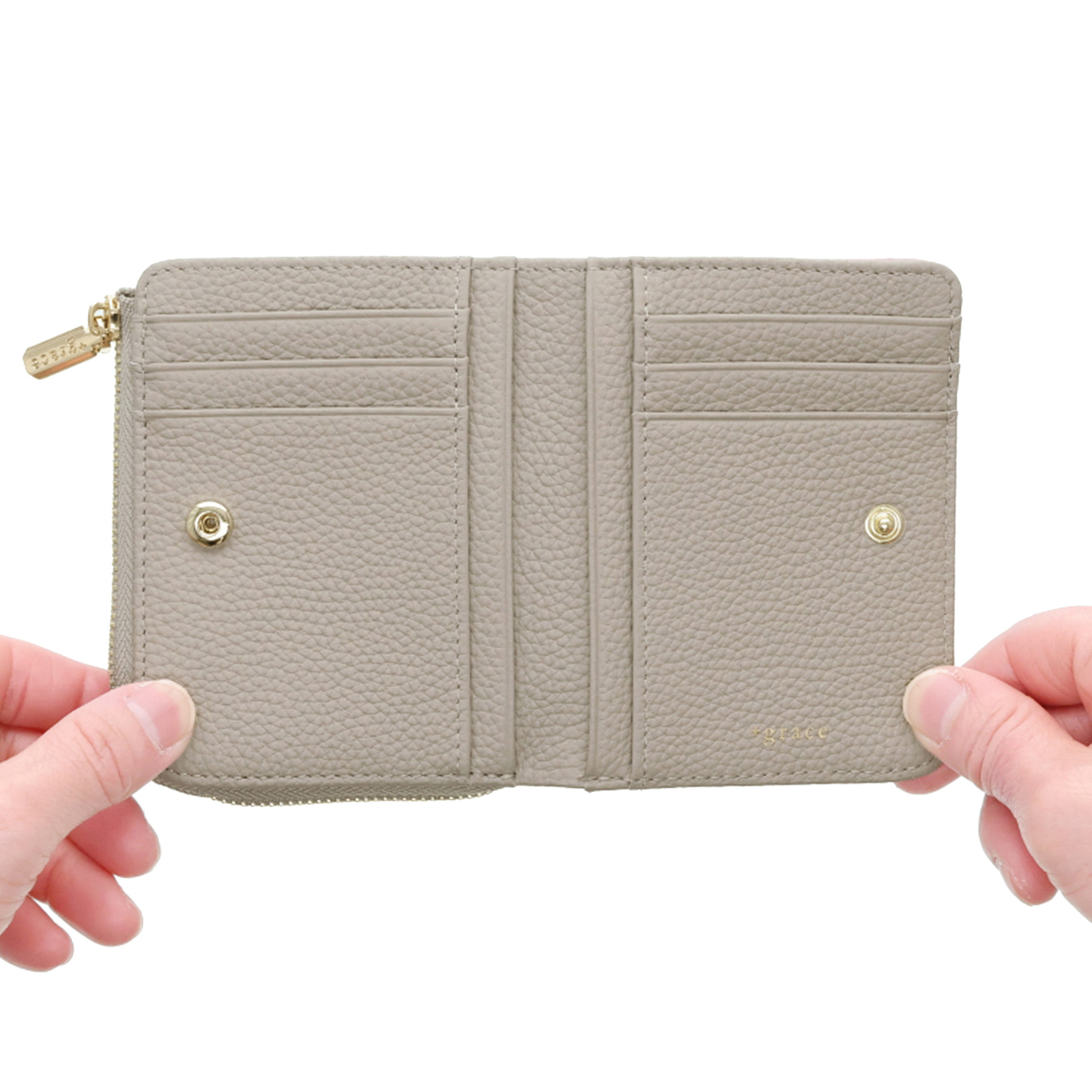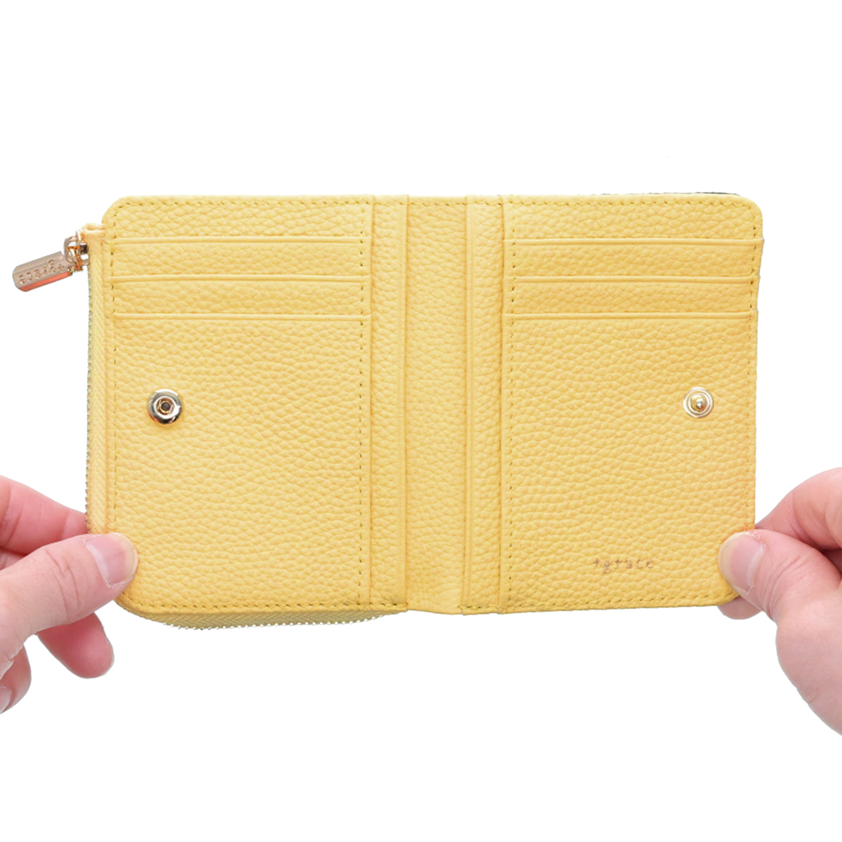 [サイズ(約)] 縦9×横11×厚み3cm [重量(約)]※付属品含む 115g [素材] 表地:牛革 内側:牛革 ※裏地有 [仕様] 付属(取り外し可):化粧箱 不織布袋 開閉:ホック式 [ポケット] 内側:札入れ×2、オープンポケット×4、カード入れ×8(内2か所札入れ) 外側:ファスナー式小銭入れ×1(中に仕切り有り) [注意事項] ※摩擦や水濡れ等により、色落ちし、衣類などへ色移りする場合がございます。薄い色の洋服との組み合わせや雨の日のご使用は十分にご注意ください ※著しく重いものや、鋭利なものを入れた場合、通常のご使用でも型崩れを起こしたり、付属品及び製品が破損する恐れがありますので、お取り扱いにはご注意ください ※ファスナー・ホック・ボタン・金具・ストラップベルト等の付属品は正しくご使用ください。誤った使用をされた場合、もしくは極度の負担がかかった場合は、付属物及び製品が破損することがありますので、お取り扱いにはご注意ください ※水分やアルコールを含む製品(香水、ウエットティッシュなど)や油分を含む製品(化粧品など)に直接触れないようご注意ください <磁石を使用した製品について> ※磁石を飲み込んでしまった場合、重大事故につながる恐れがありますので、小さなお子様やペットの手の届かないところに保管してください ※万が一磁石を誤飲した場合は、直ちに医師の診察を受けてください ※マグネット近くに磁気カードなどを近づけると磁気データが消えてしまうことがあります <革製品のお手入れ方法及び保存方法> ※日常のお手入れとして、使用後はブラシでホコリや汚れを払ってください ※濡れた場合は、乾いたやわらかい布で手早く水気を取り、風通しの良い場所で陰干ししてください ※素材に合ったクリーナーやクリーム等を説明書に従って使用してください ※直射日光、高温な場所、湿度の高い場所での保管は、退色、色落ち、変形、型崩れ、質感の変化の原因となりますので、お避けください <防カビ剤が入っている場合> ※使用する製品にワサビの香りが移ることがありますが、袋から出し通気性の良い場所に置くことで香りは軽減されます 【中国製】