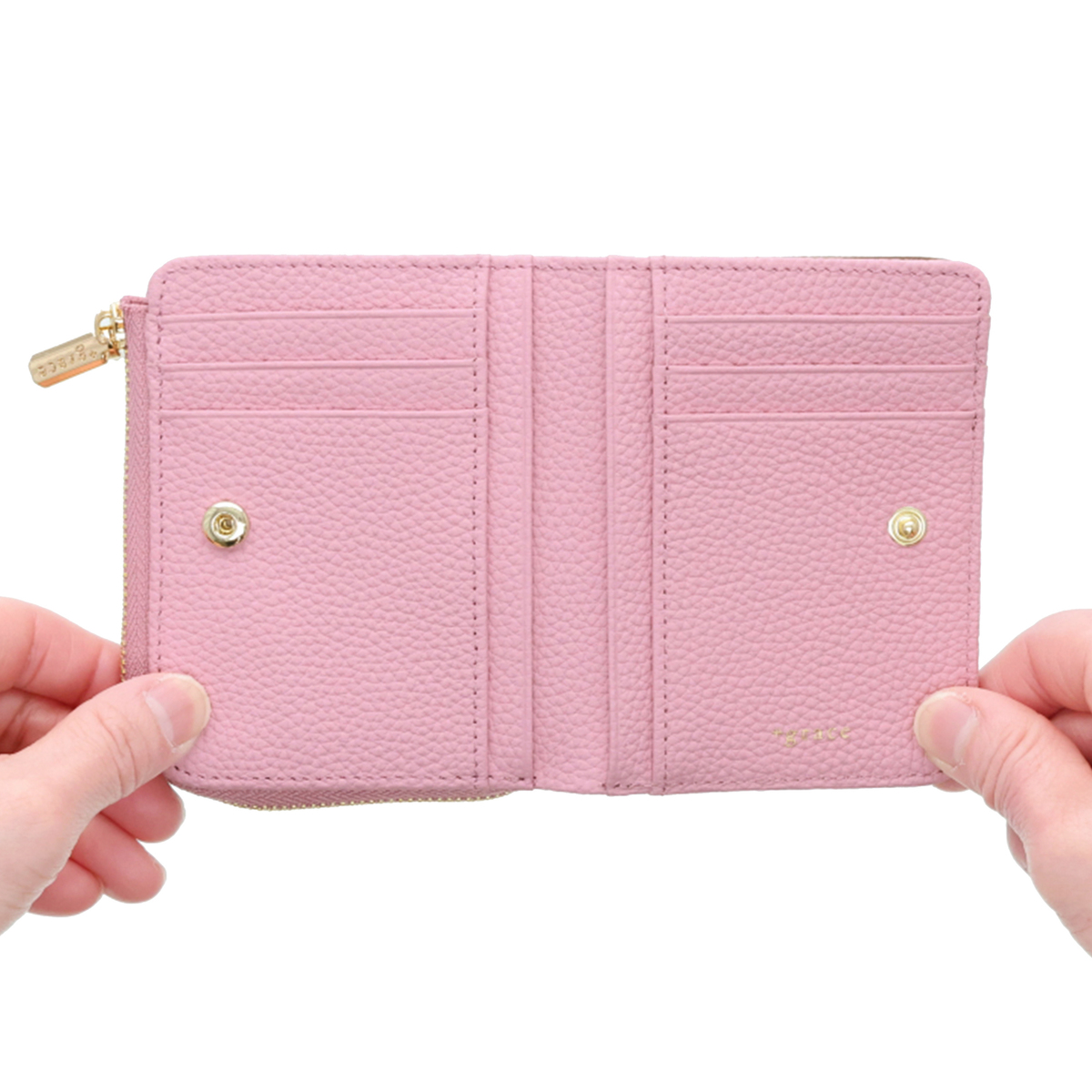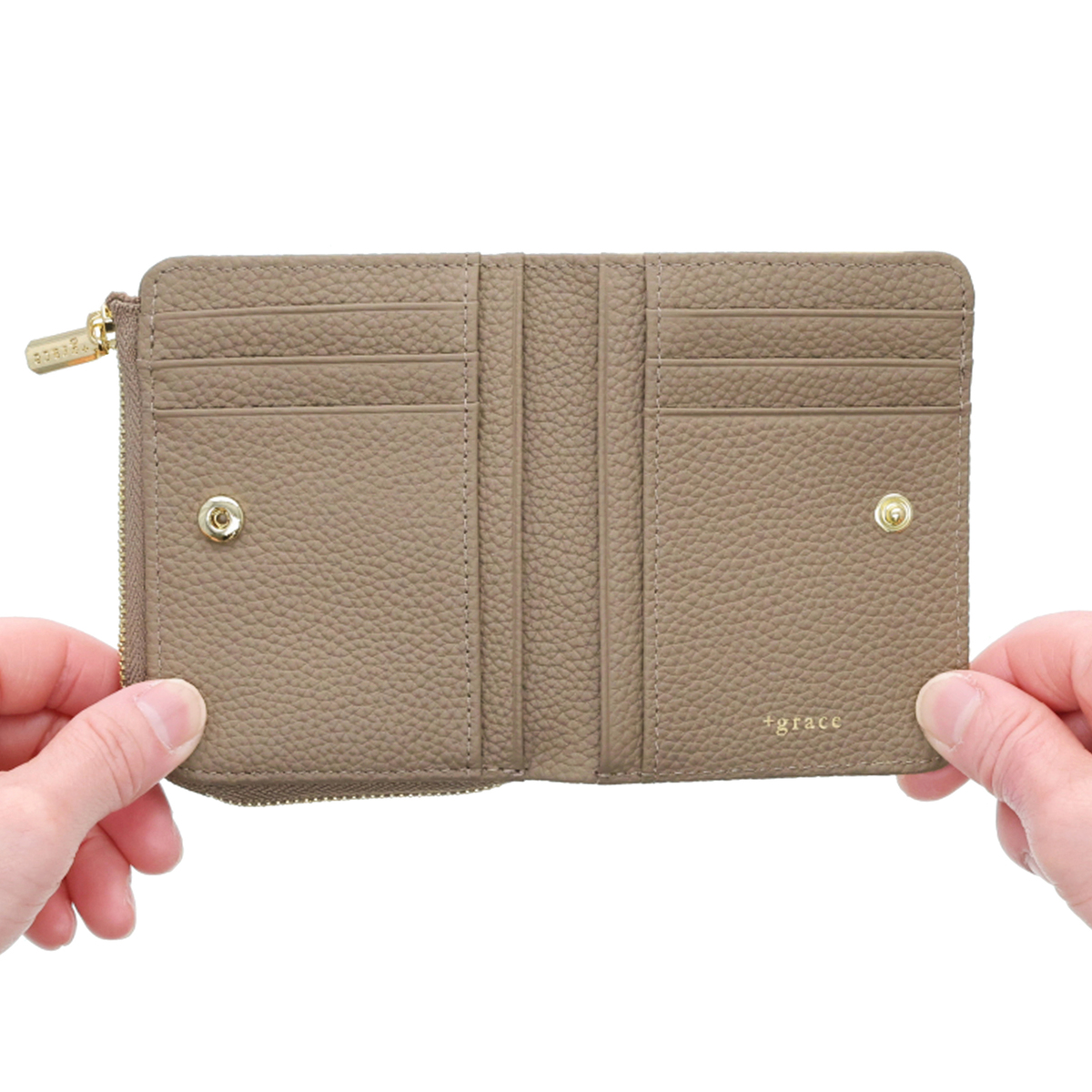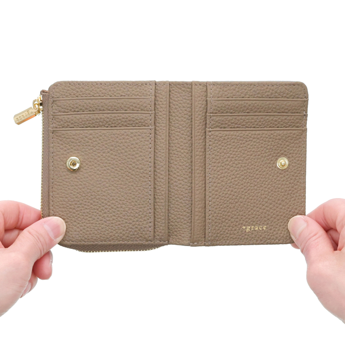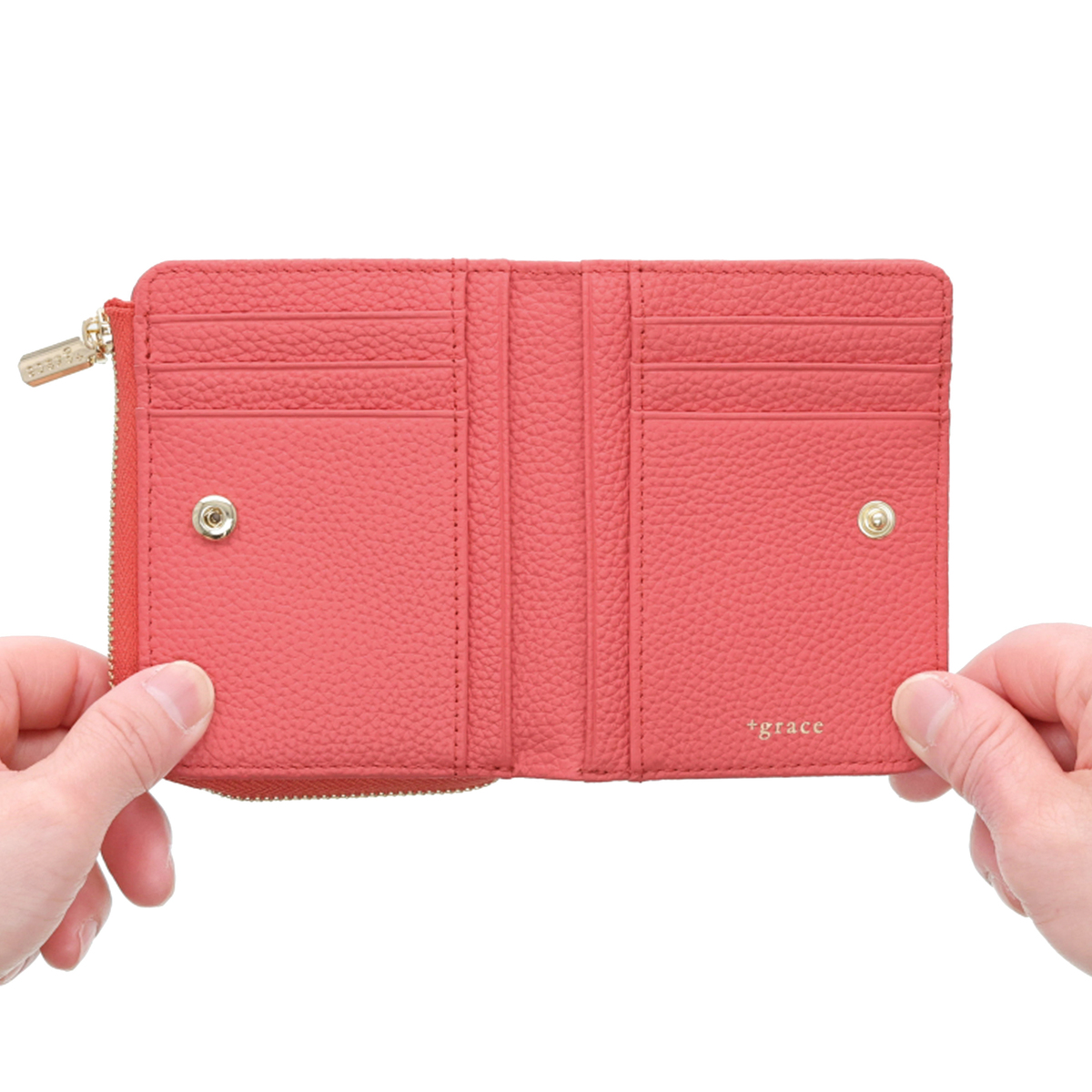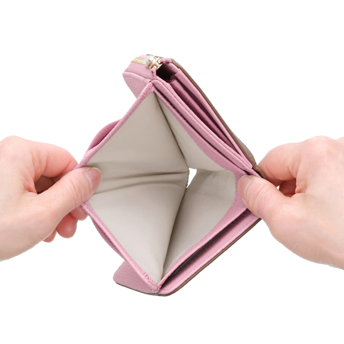 上品なシュリンクレザーを使用したコンパクトウォレットです。外側と内側のレザー色が異なるバイカラー仕様で、華やかな色彩に。ステッチの色にもこだわり、本体の革が映えるように本体色にあわせて変えています