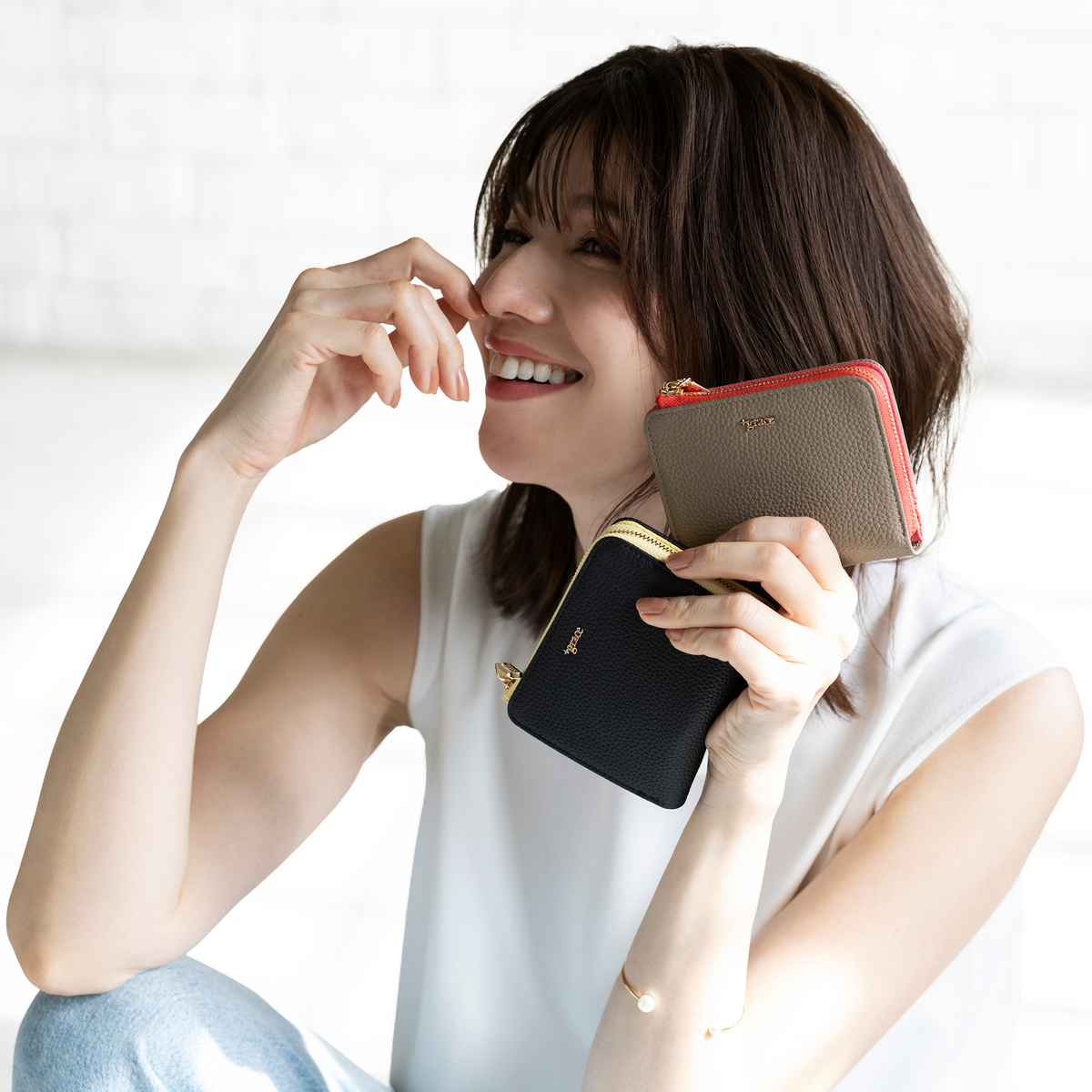 L字型ファスナーの小銭入れやカード入れが機能的に配置され、収納力も十分。裁断は職人が手作業で行い、細部まで美しさにこだわりました。専用の化粧箱付きでお届けします