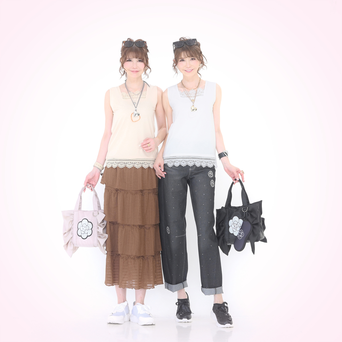 ショーの前でしたが、バッグやアクセサリーはすぐに完売してしまうので事前にブラックを購入しました。 スパンコールのキラキラカメリア、フリルの横長デザイン、とっても軽くて普段の荷物がしっかり収まるので大満足です! かわいいデザインなので大人女子にはブラックで正解でした。