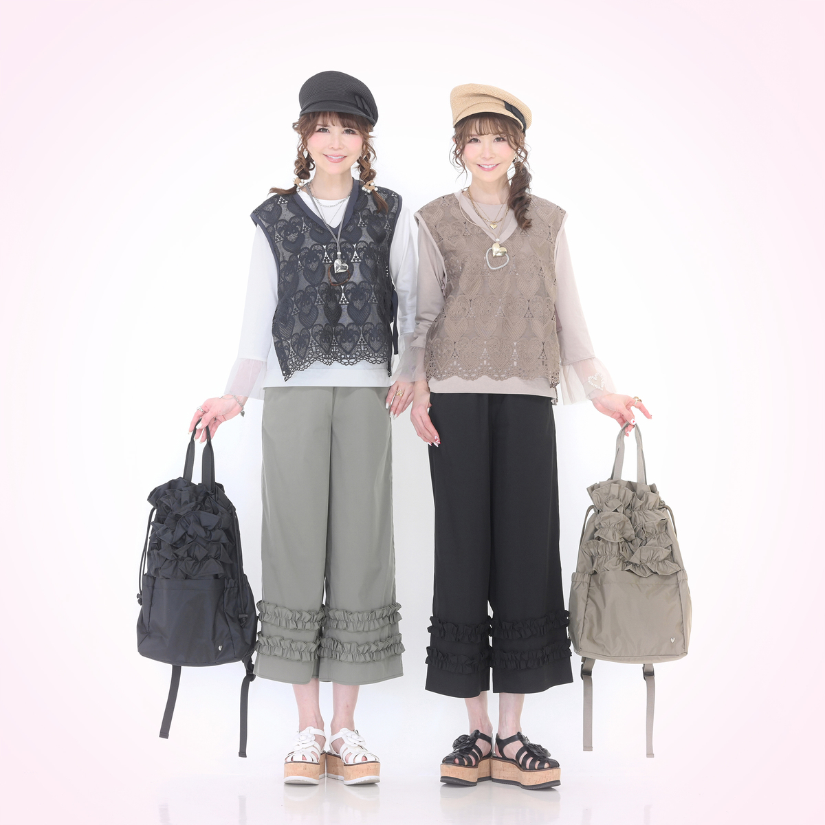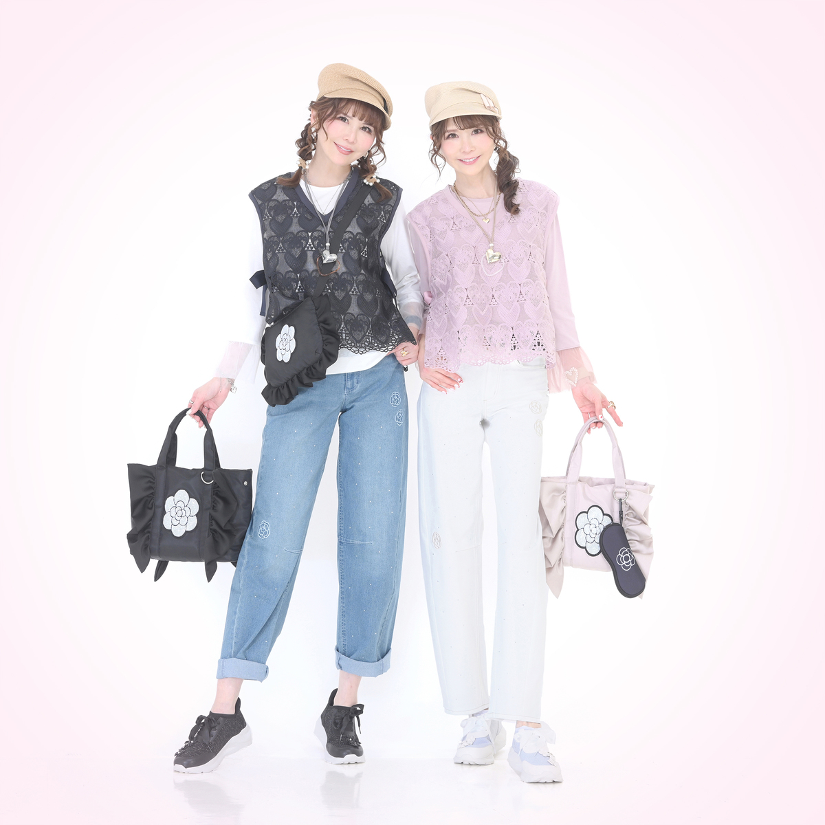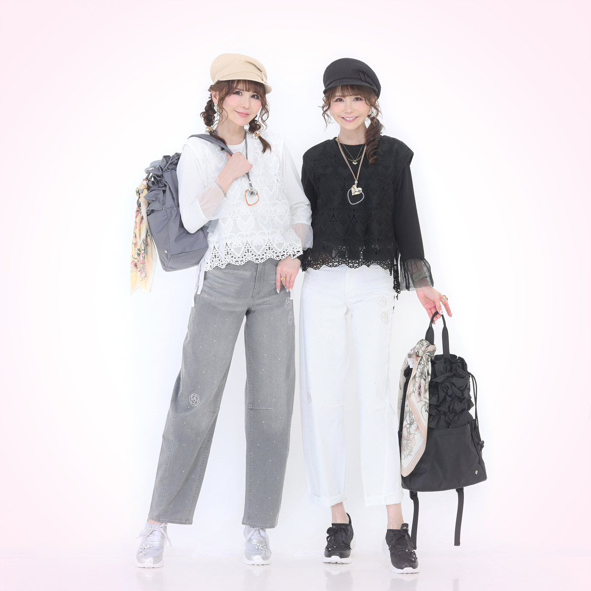 異素材のハートを重ねたデザインが映えるネックレス。アクリル樹脂の抜きハートとメタルハートを組合せた上品なデザインが視線を引き付けます。紐はスライド式で長さ調整ができ、付け根のラインストーンがカジュアルな中に上品なきらめきを添えます