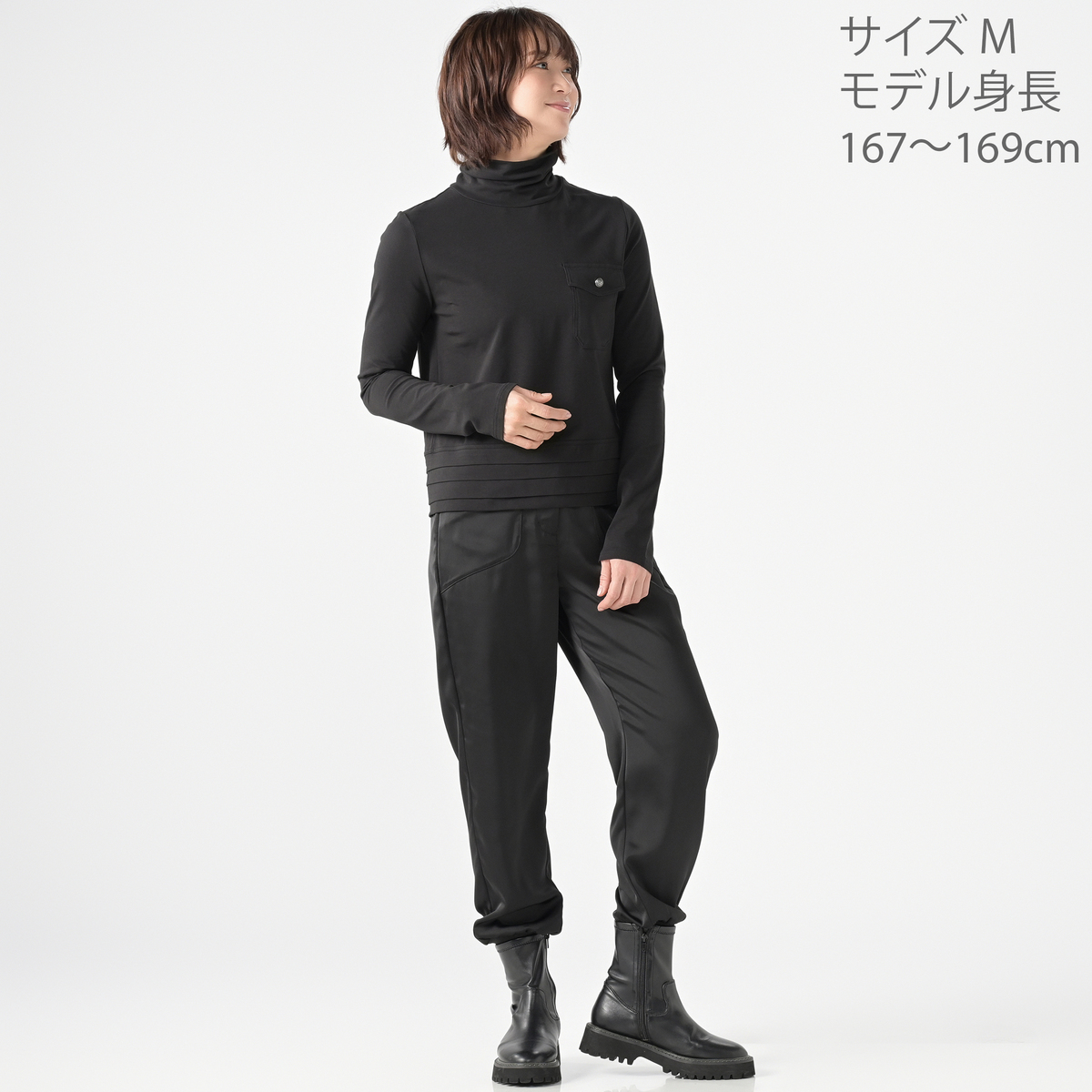 No. 752322 MASAGO クリアーベア天竺ハイネック長袖裾タックTシャツ