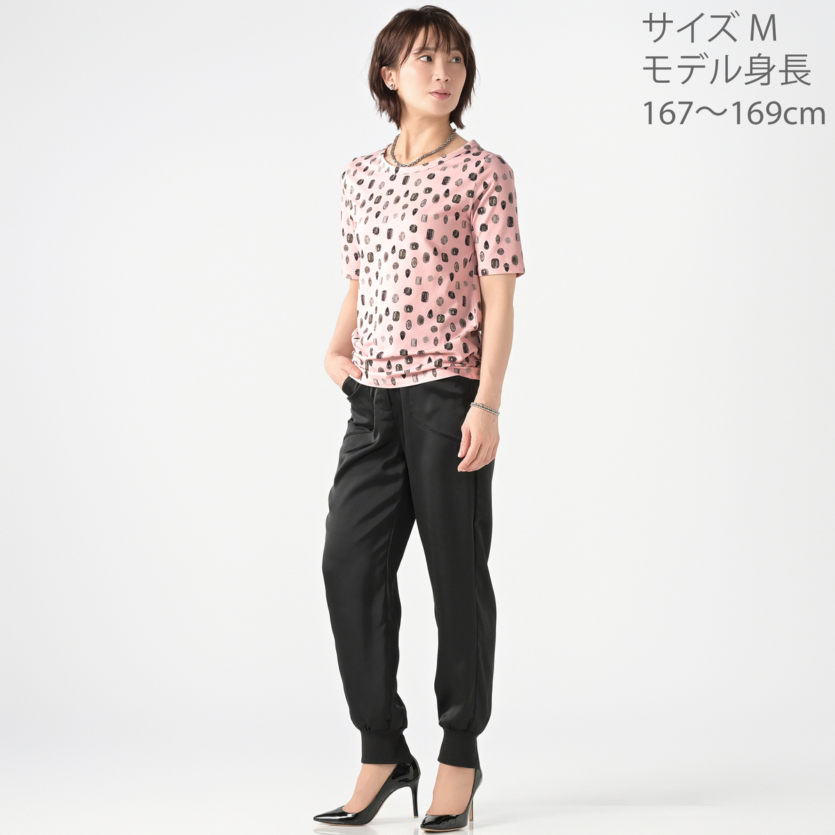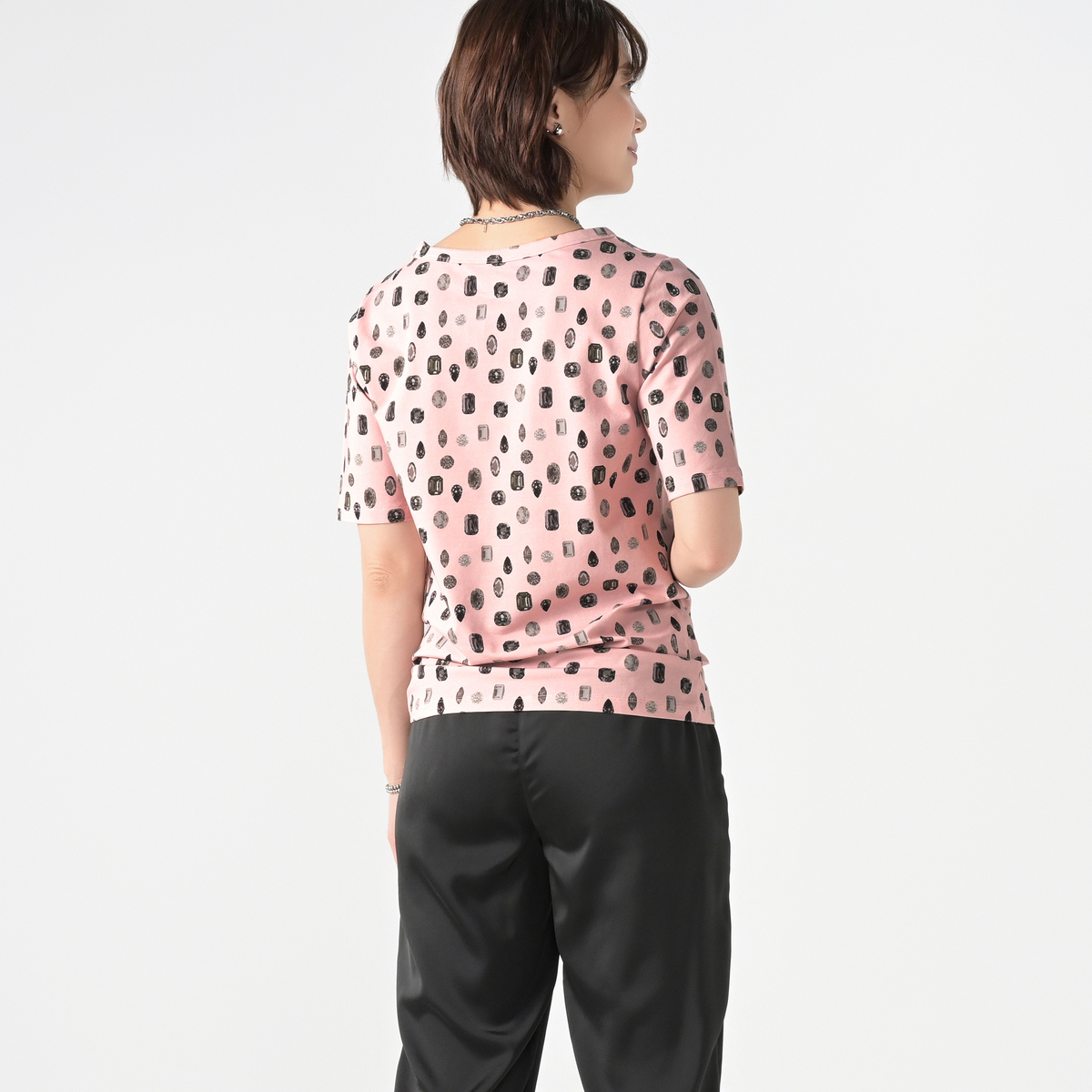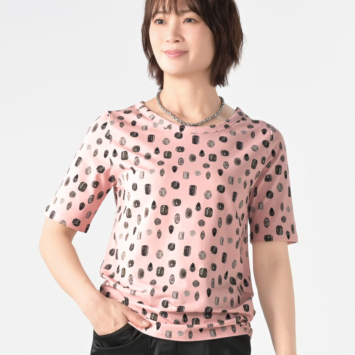 No. 752325 MASAGO ジュエリープリント5分袖Tシャツ
