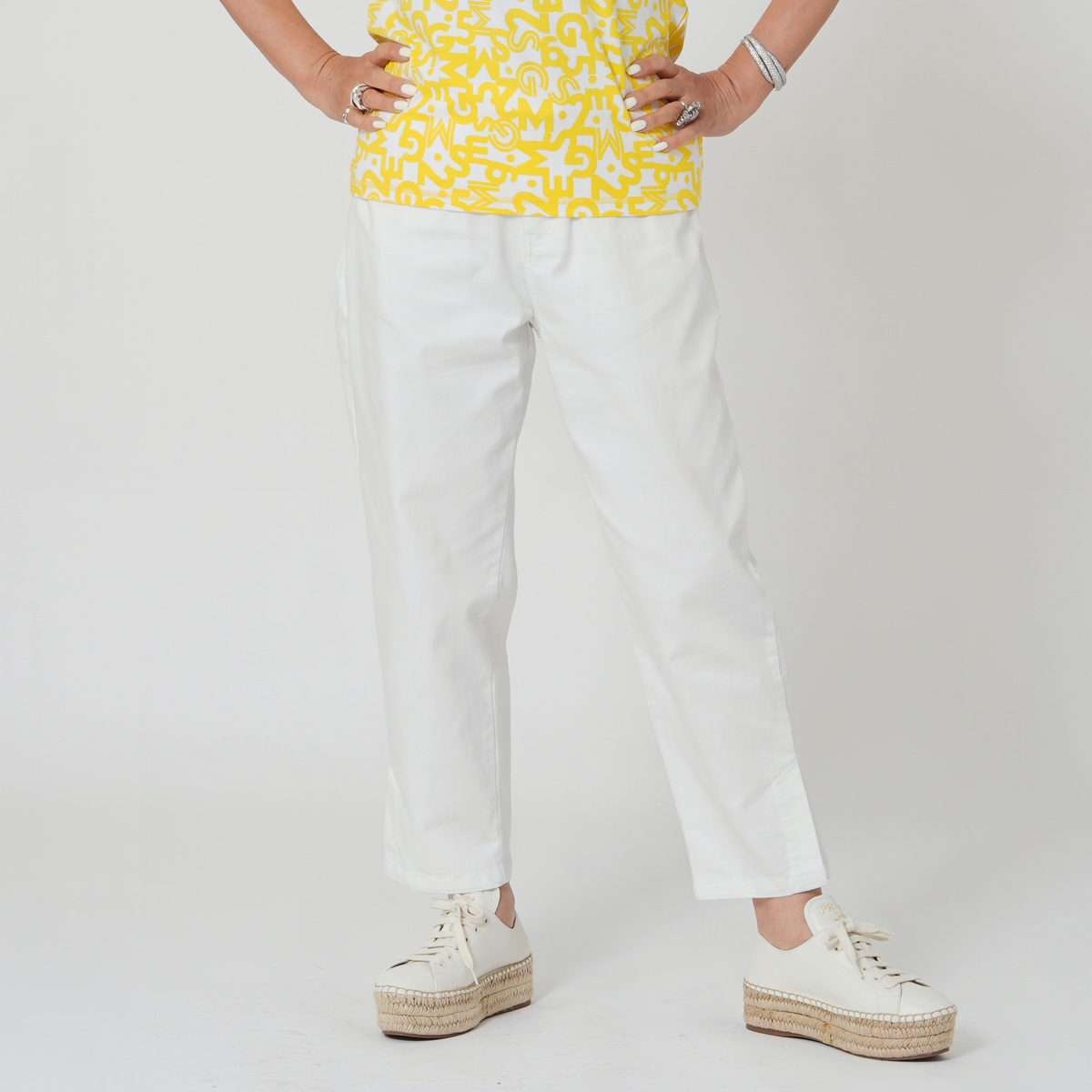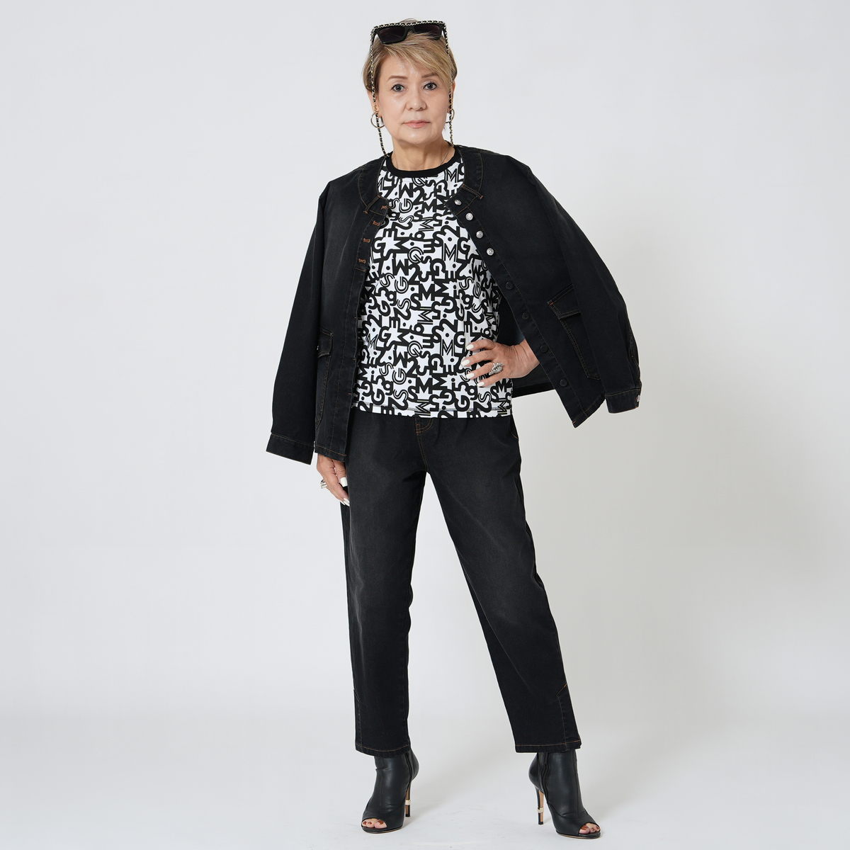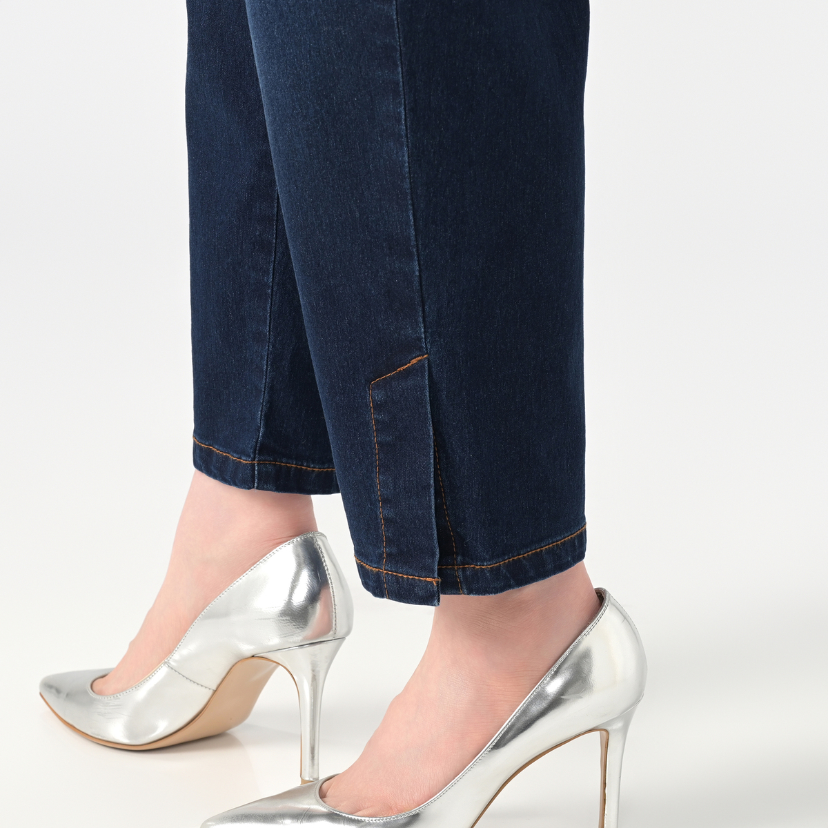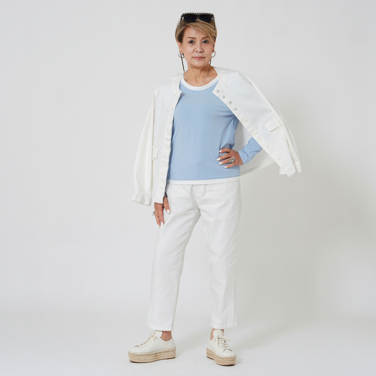 足元をすっきり見せてくれる、ストレッチデニムのアンクル丈パンツ。洗い加工とブラスト加工が施され、こなれ感のある表情に。セットアップも楽しめ、コーディネートが広がります
