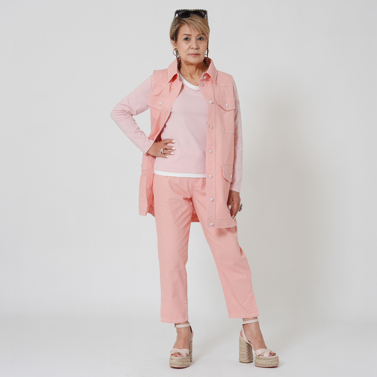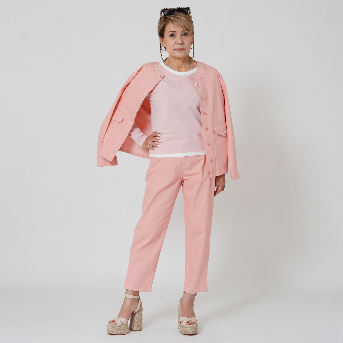 3L体型で足太なので迷ったけど真砂さんのアドバイス通りLL購入。マジで足の形をひろわず細く見えるし垂れたお尻もポケットの大きさと位置で小さくヒップアップ見えして程よく伸びて理想的なパンツです。またピンクがこれからの季節にぴったりな良い色味!