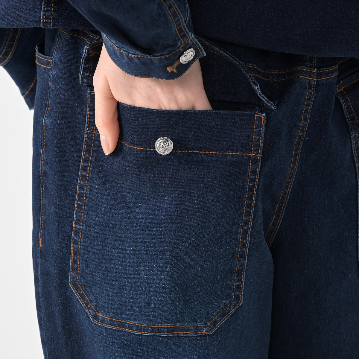 全体的には好みのデニムでした が、ウエストのボタンが華奢で心もとない物でした ですので 自身でしっかりした物に付け替えようと思っています サイズはいつものサイズよりワンサイズ下げて正解でした