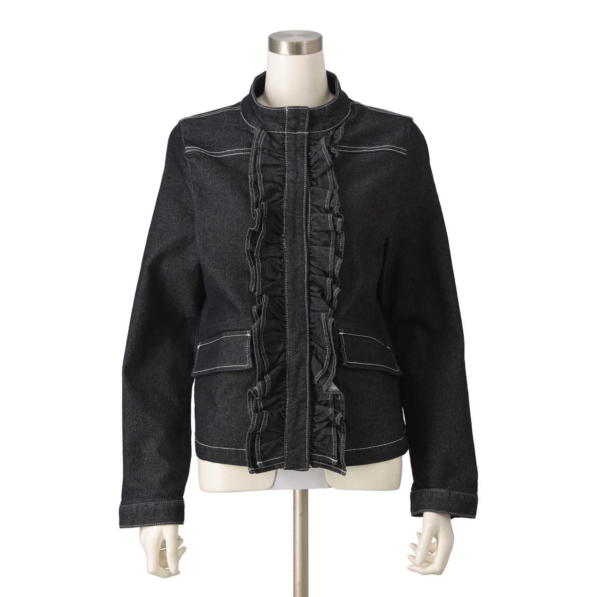 8.5オンスで程よい厚みのストレッチデニム素材を使用したブルゾン。風を心地よく遮りながら軽やかに羽織れます。前立てフリルは端約5mm三つ折りで品よく仕上げ、片玉縁+フラップ仕様のポケットやステッチが細部まで上品さを演出しています