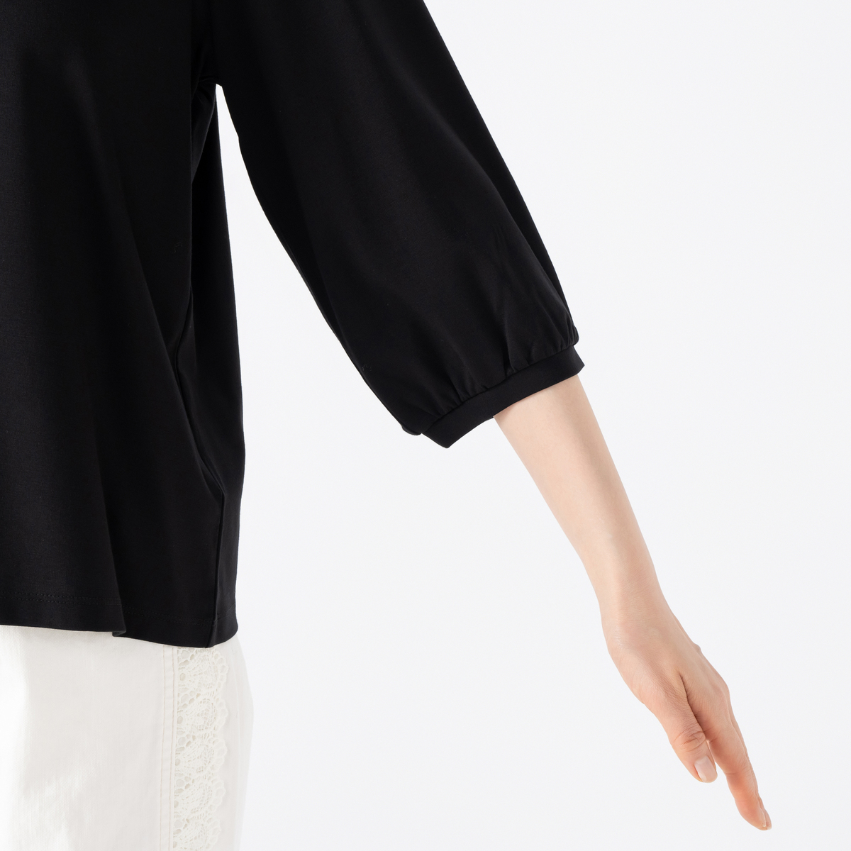 程よい厚さと上品な質感が心地よいトップス。表面がなめらかなカットソー素材が軽やかに映え、お腹まわりをやさしく包むストレートシルエットです。身幅にもゆとりがあり、体型を自然にカバーします
