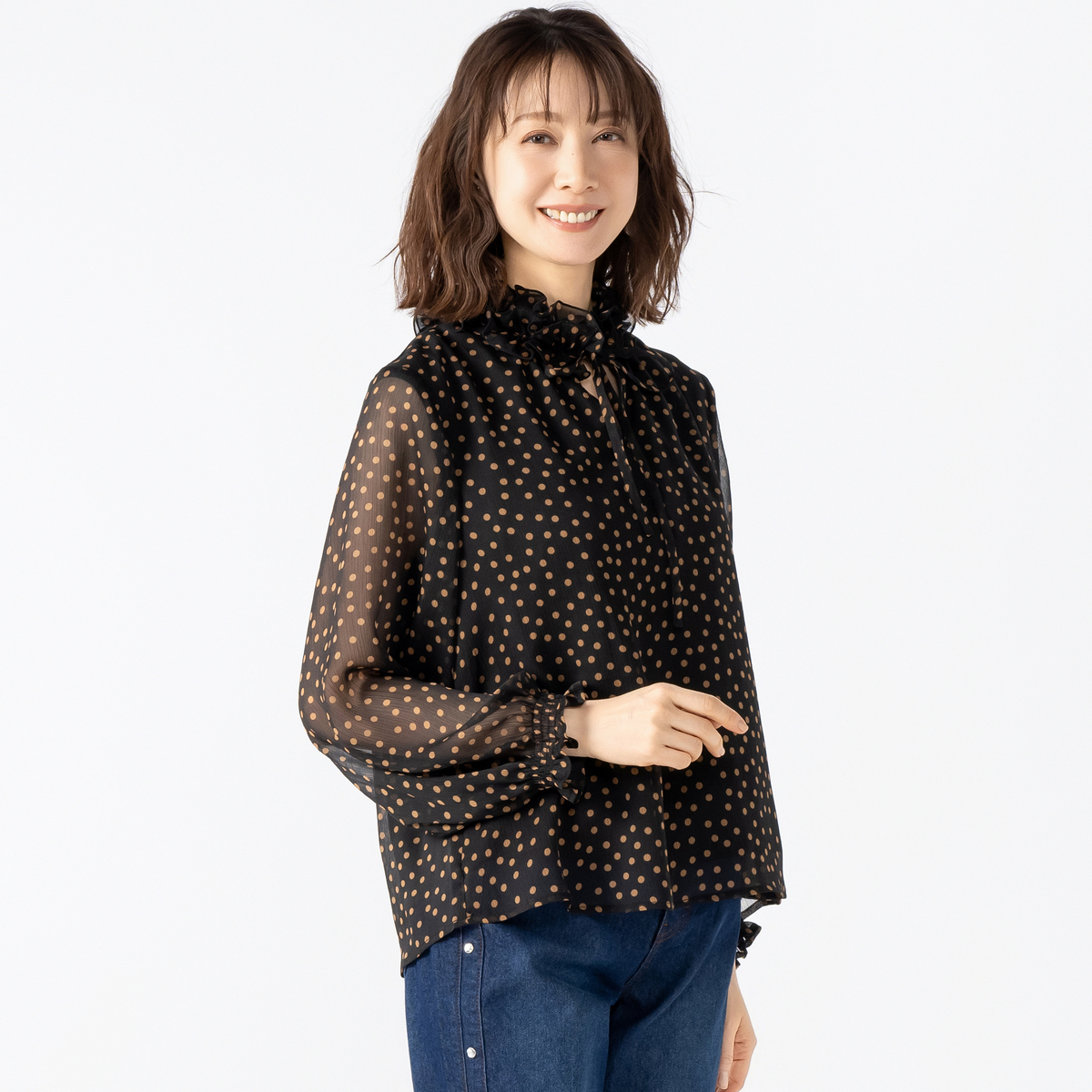 No. 752334 &LOVE 大人Sweetなクチュールふりるドットブラウス