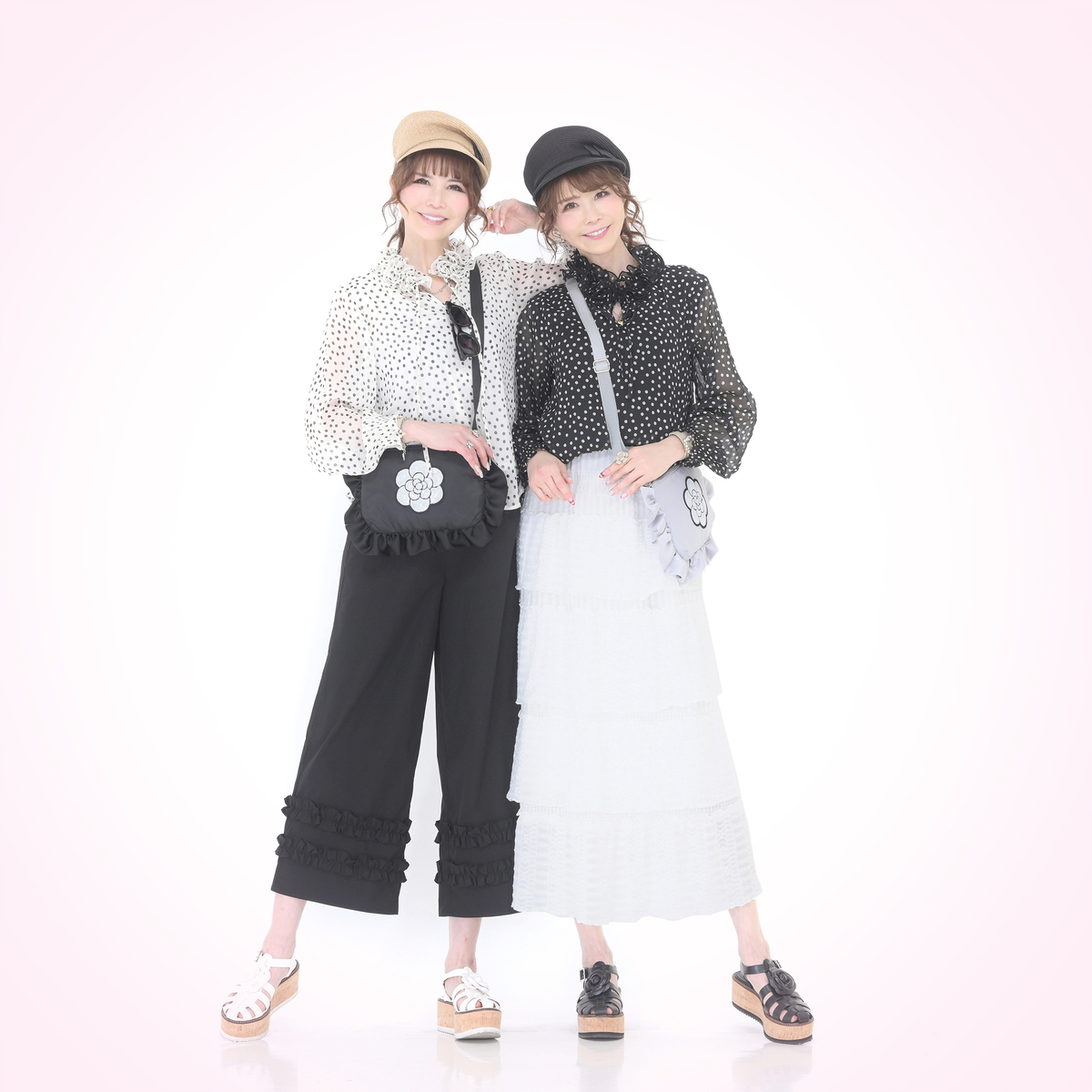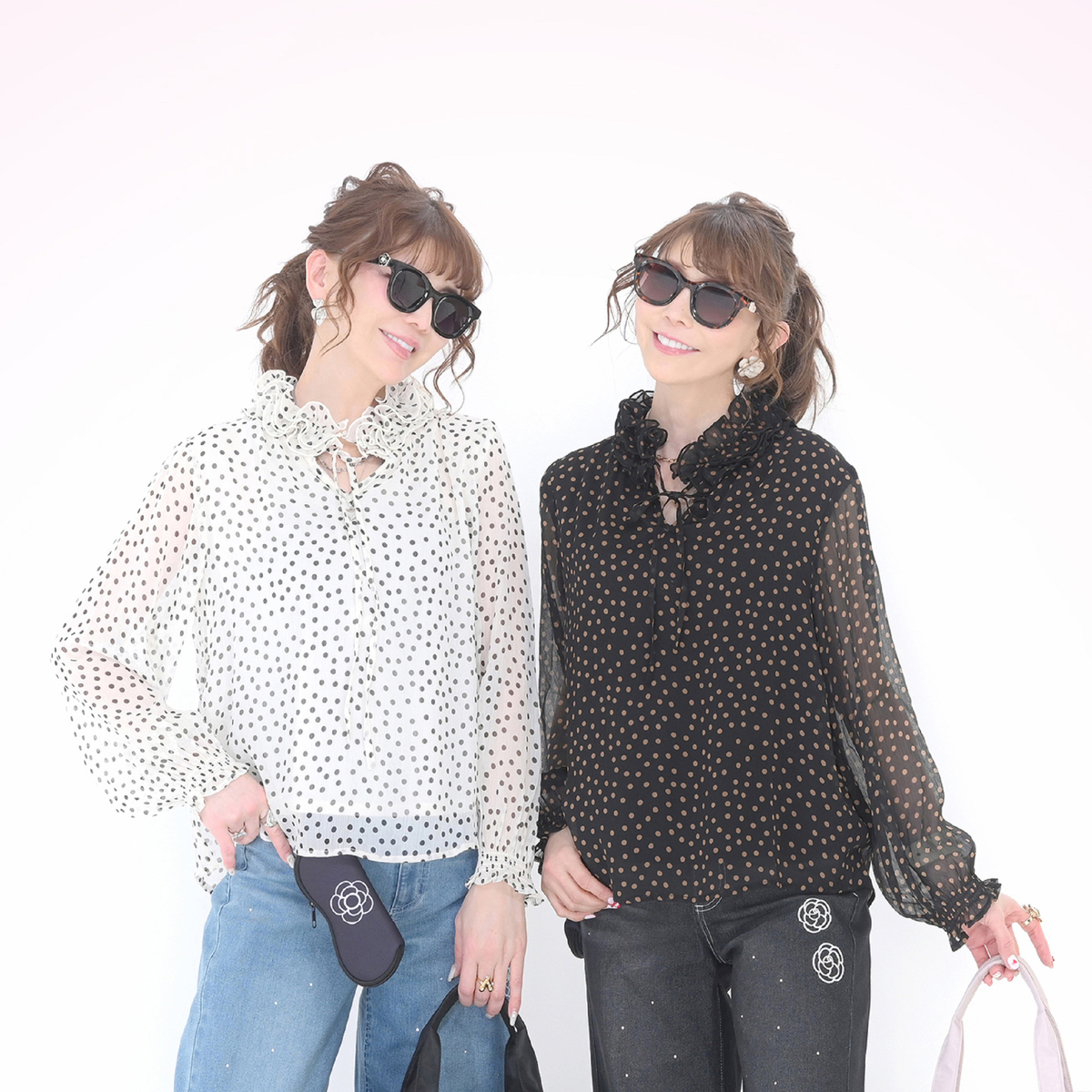 キャメルドットとオフホワイトにブラックドット2枚を購入。もう一つのブラックにホワイトドットは、よくあるパターンなので、今回、この2着にしました。首元がとっても華やかでシワを隠してくれます。ただ、オフホワイトの方はさほど気にならないのですが、キャメルの方は、二の腕部分がうっすらとカタチとなって見えるのが気になりました。腕の太い私には無理かなと思いましたが、中に薄い黒インナーを着てみたところ問題解決!このまま頂きます。