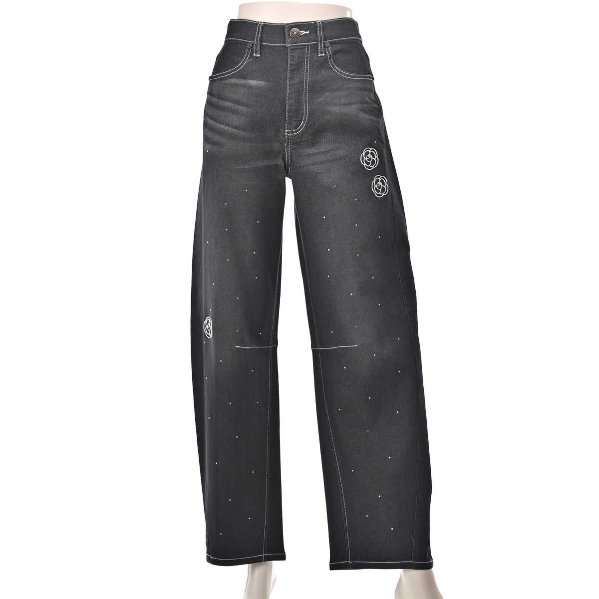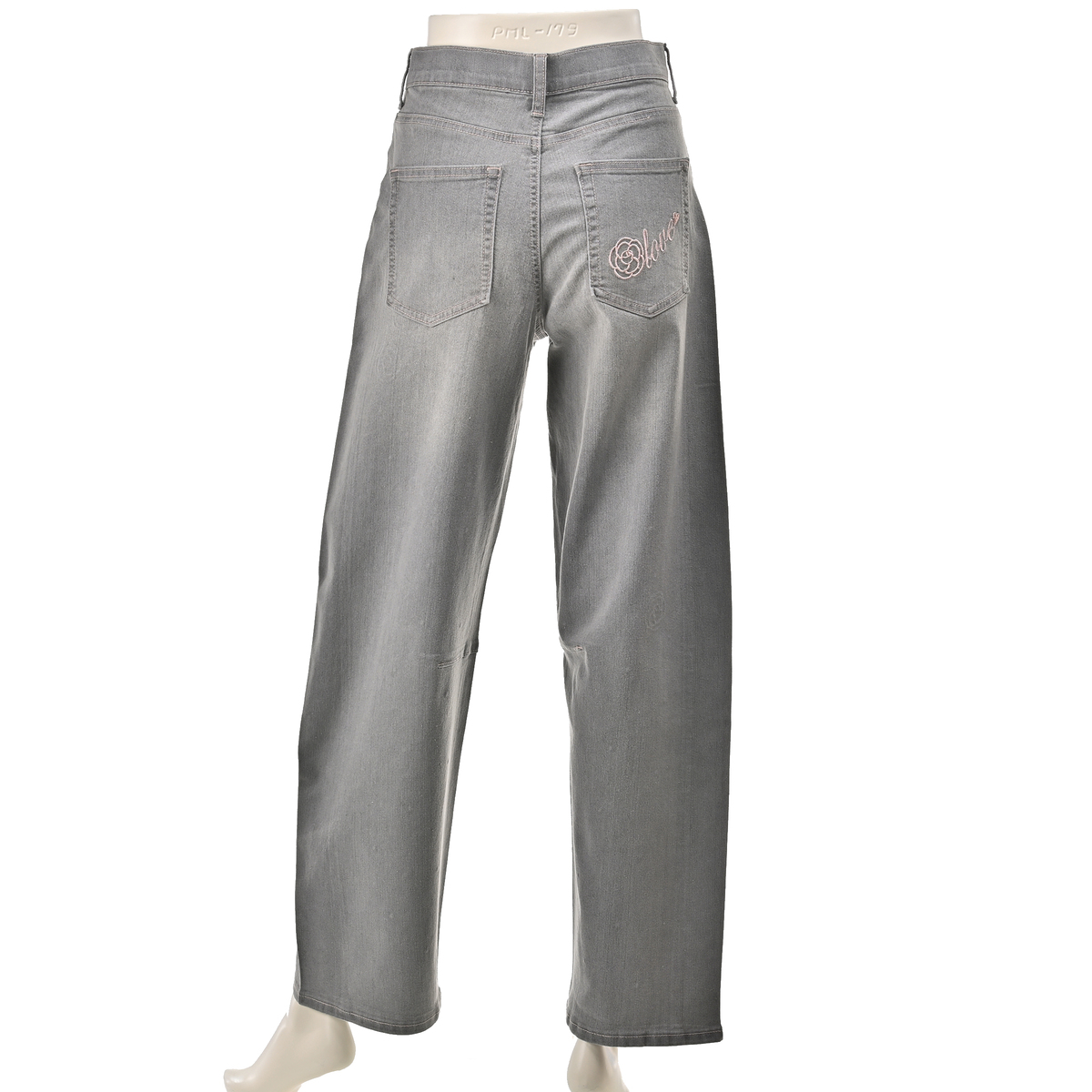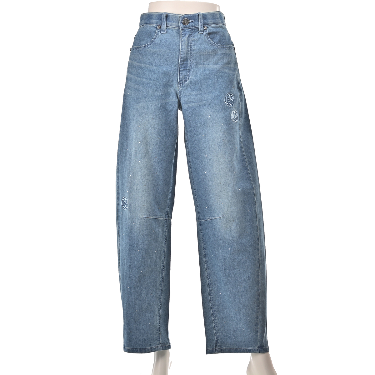 No. 752336 &LOVE キラキラカメリア刺繍のバレルデニムパンツ