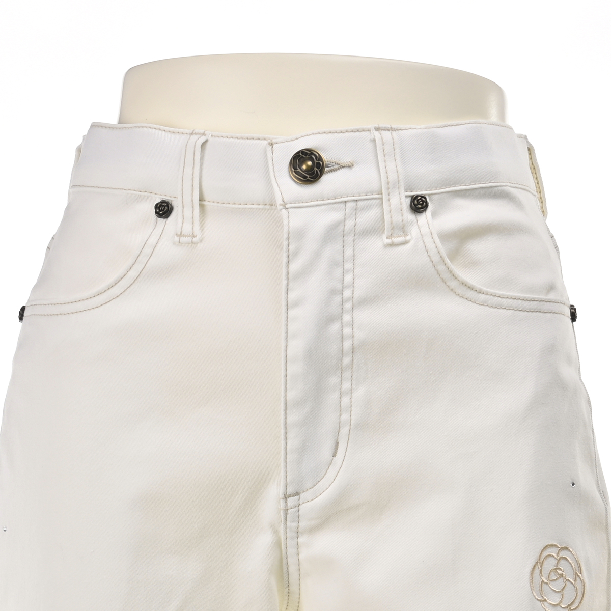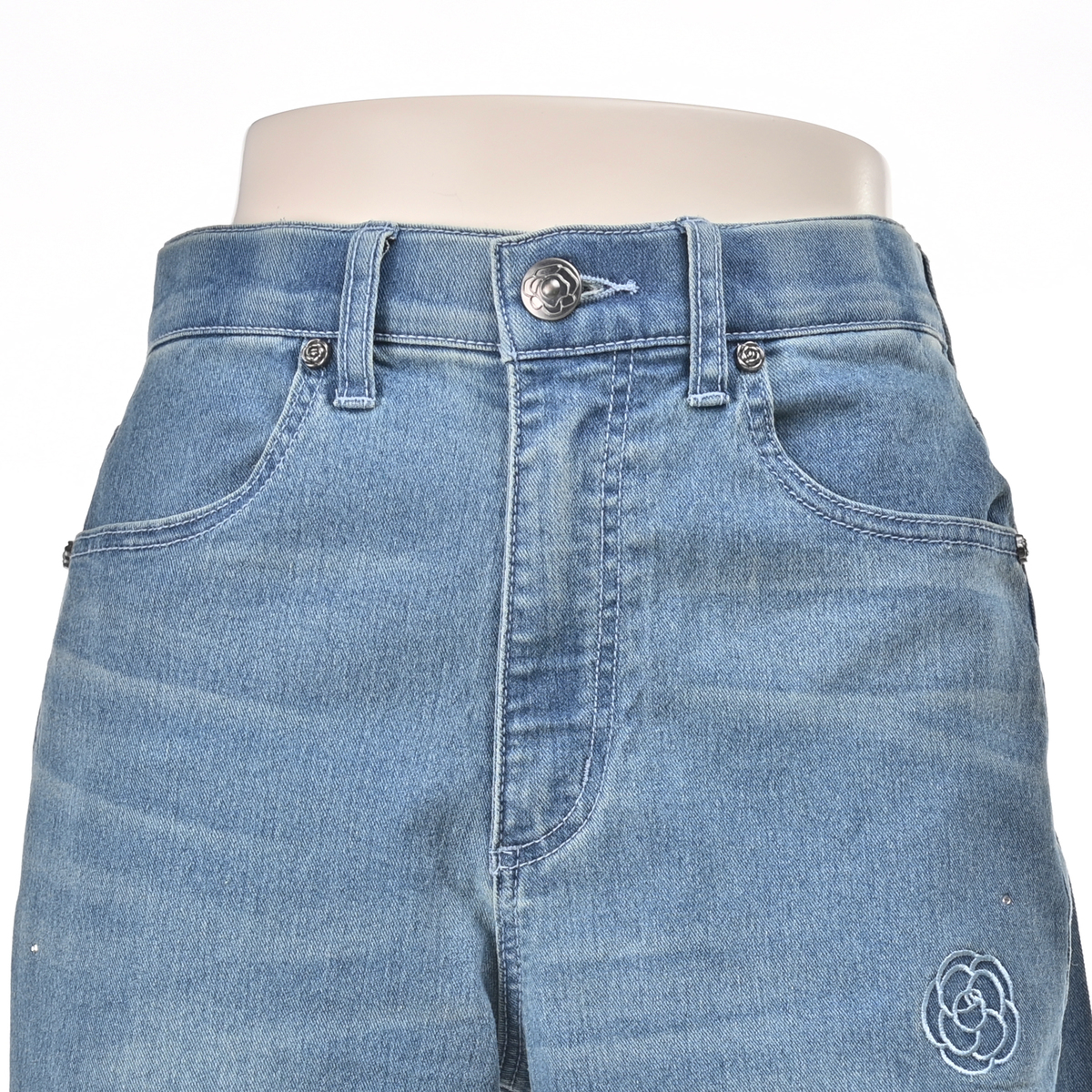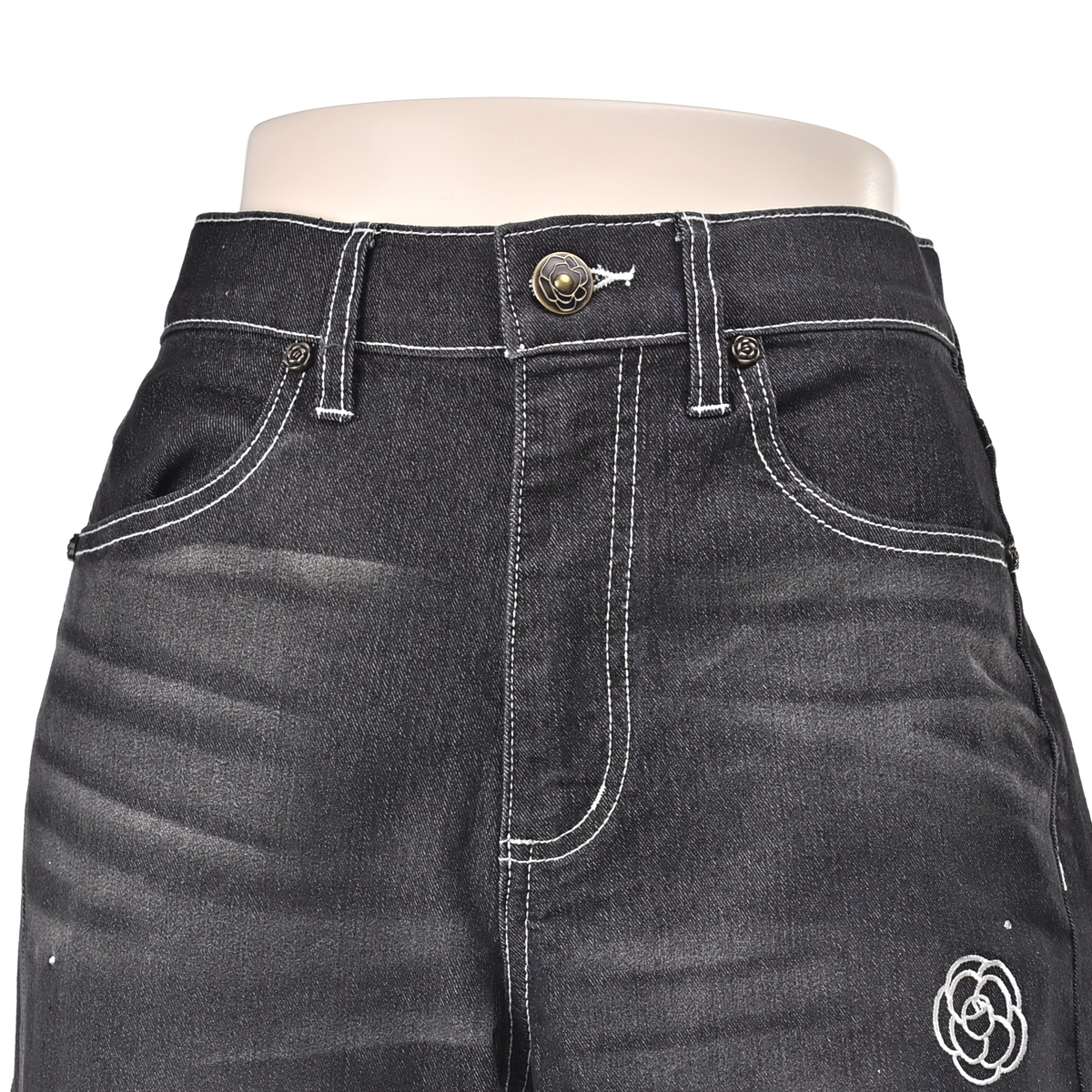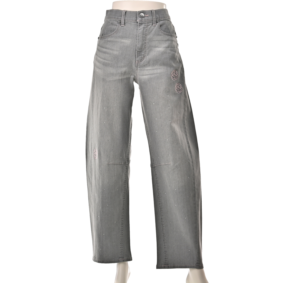 No. 752336 &LOVE キラキラカメリア刺繍のバレルデニムパンツ