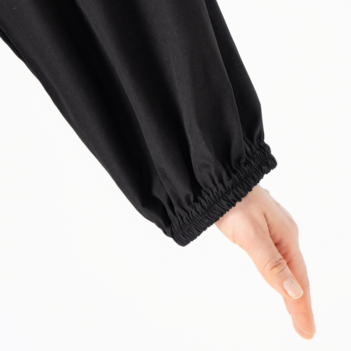 布帛素材を使用し、しっかりとした張り感と程よい密度の織りが特徴です。撥水加工を施しているので水をはじきやすく、さらりとした手触りと軽い素材感でロングシーズン活躍します