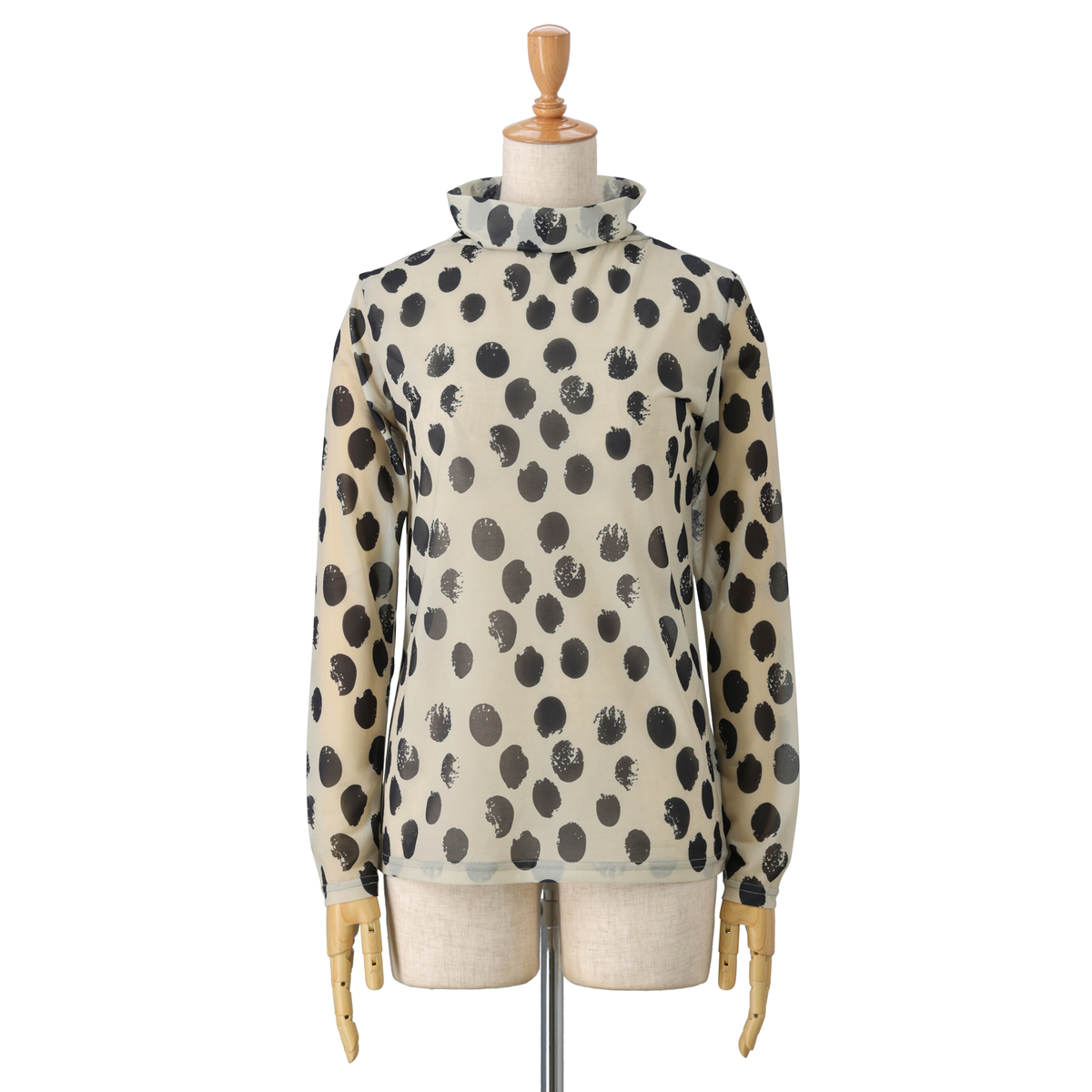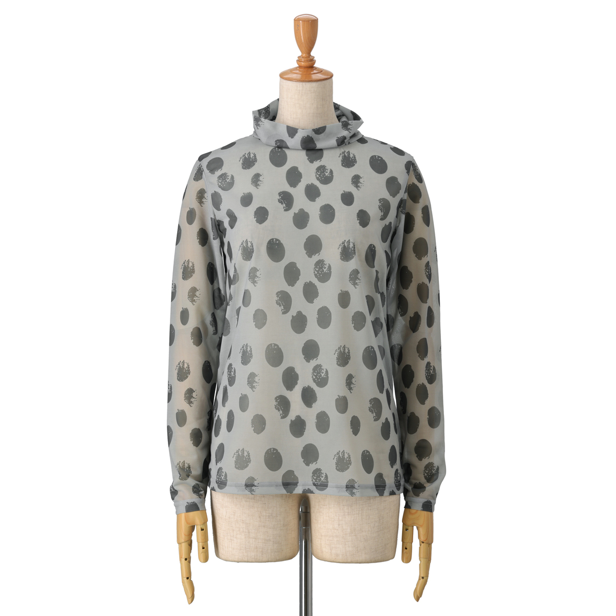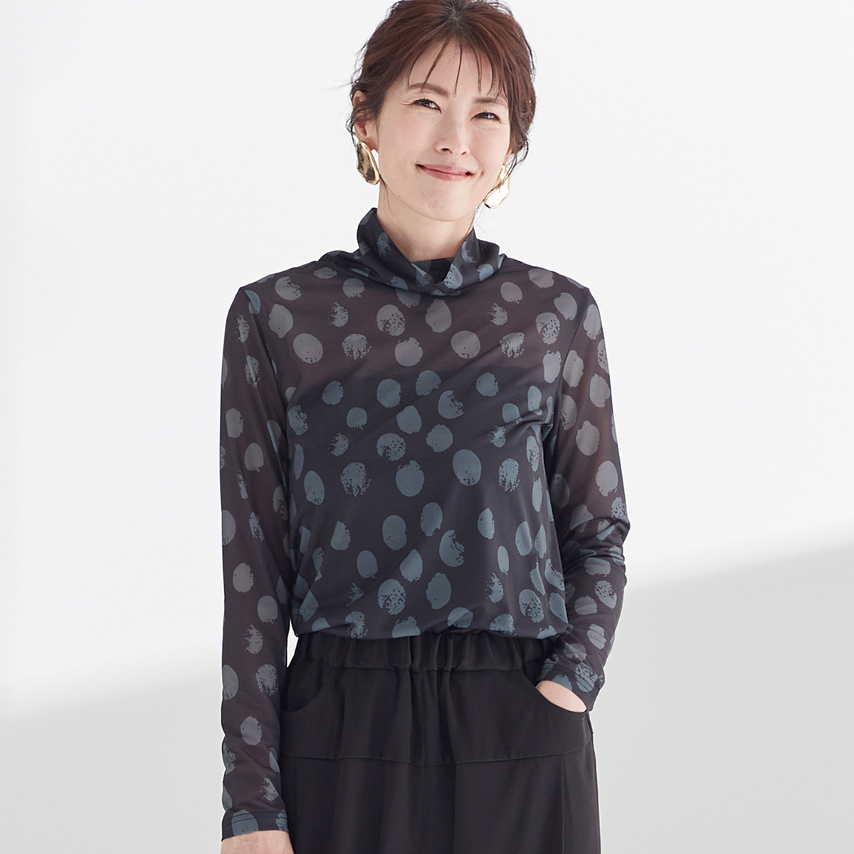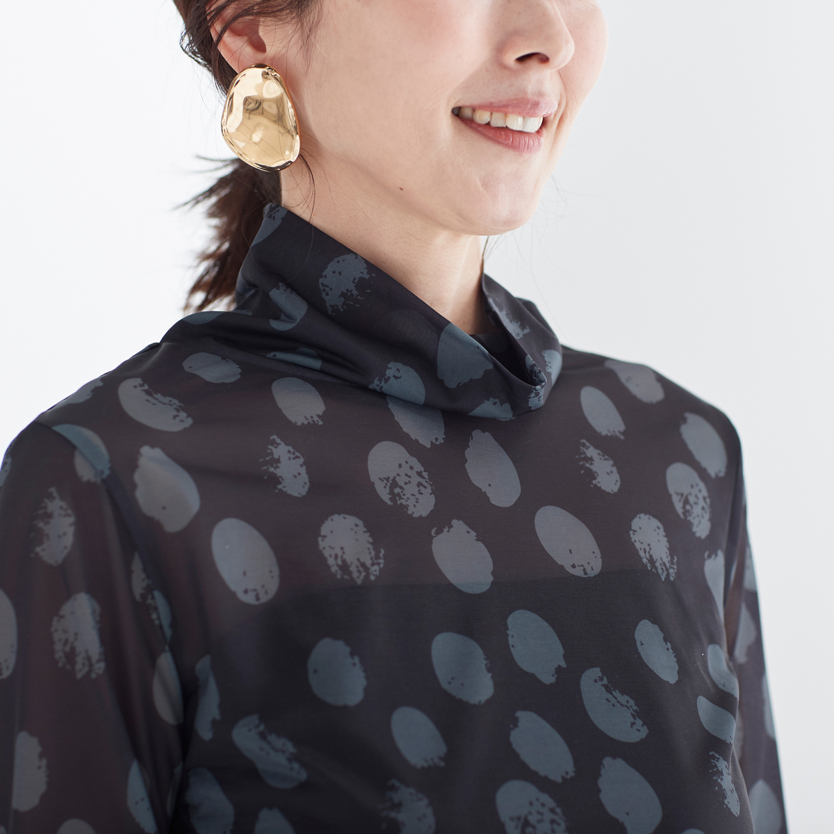 手書きのような変形ドット柄をプリントしたシアートップス。コーデに加えるだけでモードなアクセントになってくれます
