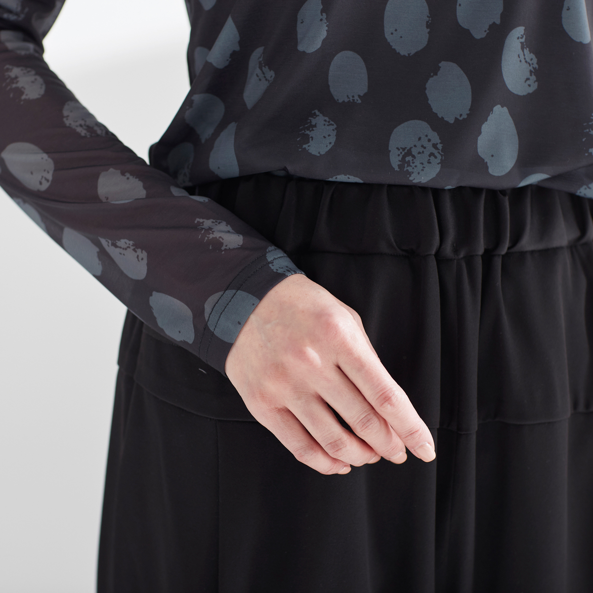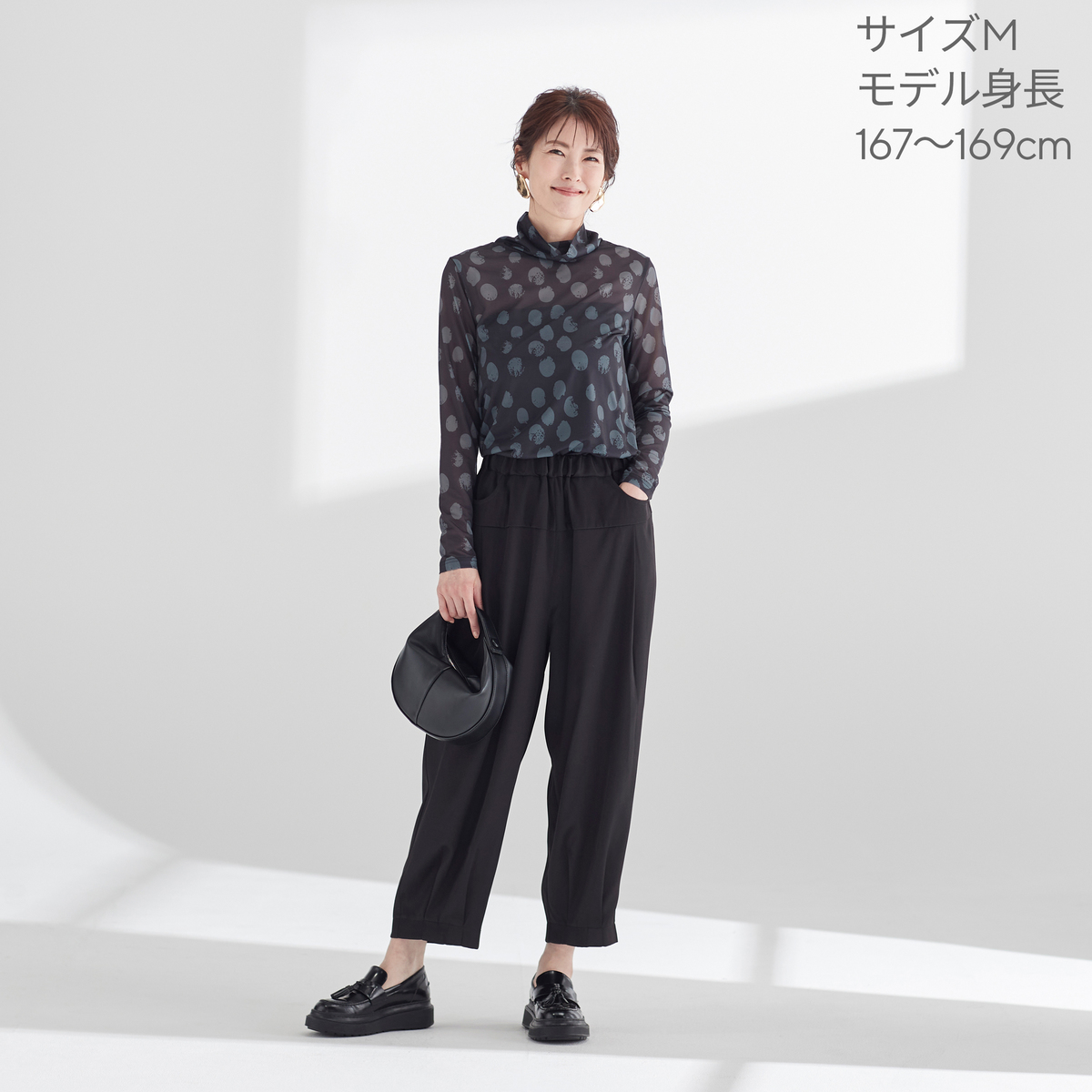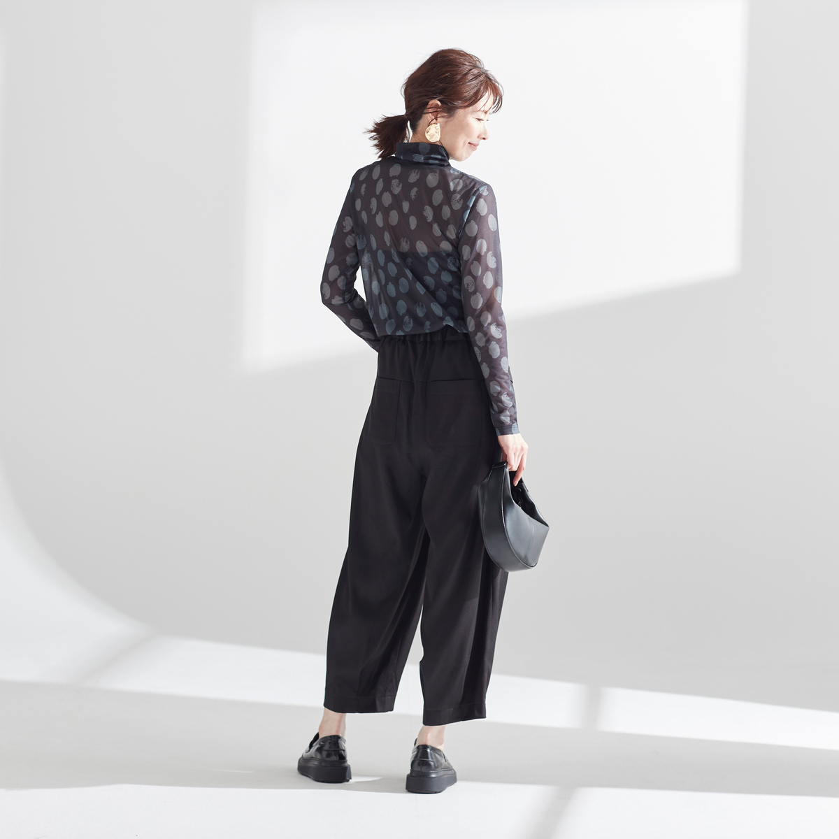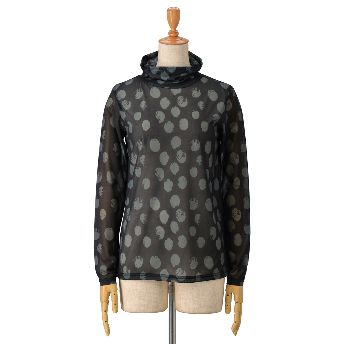 手書きのような変形ドット柄をプリントしたシアートップス。コーデに加えるだけでモードなアクセントになってくれます